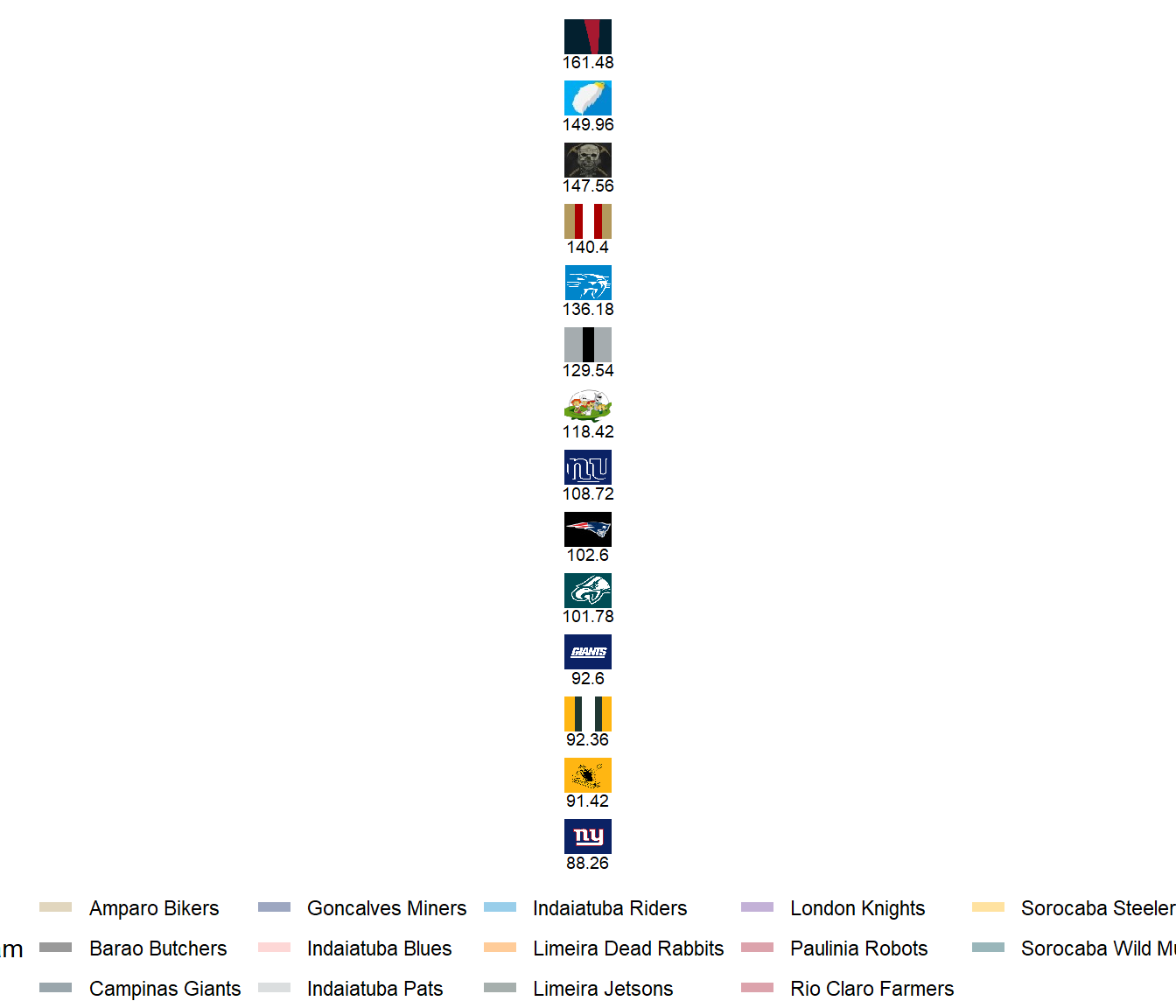League Leaders: Robots, Rabbits, Miners, Bikers, Riders, Jetsons.