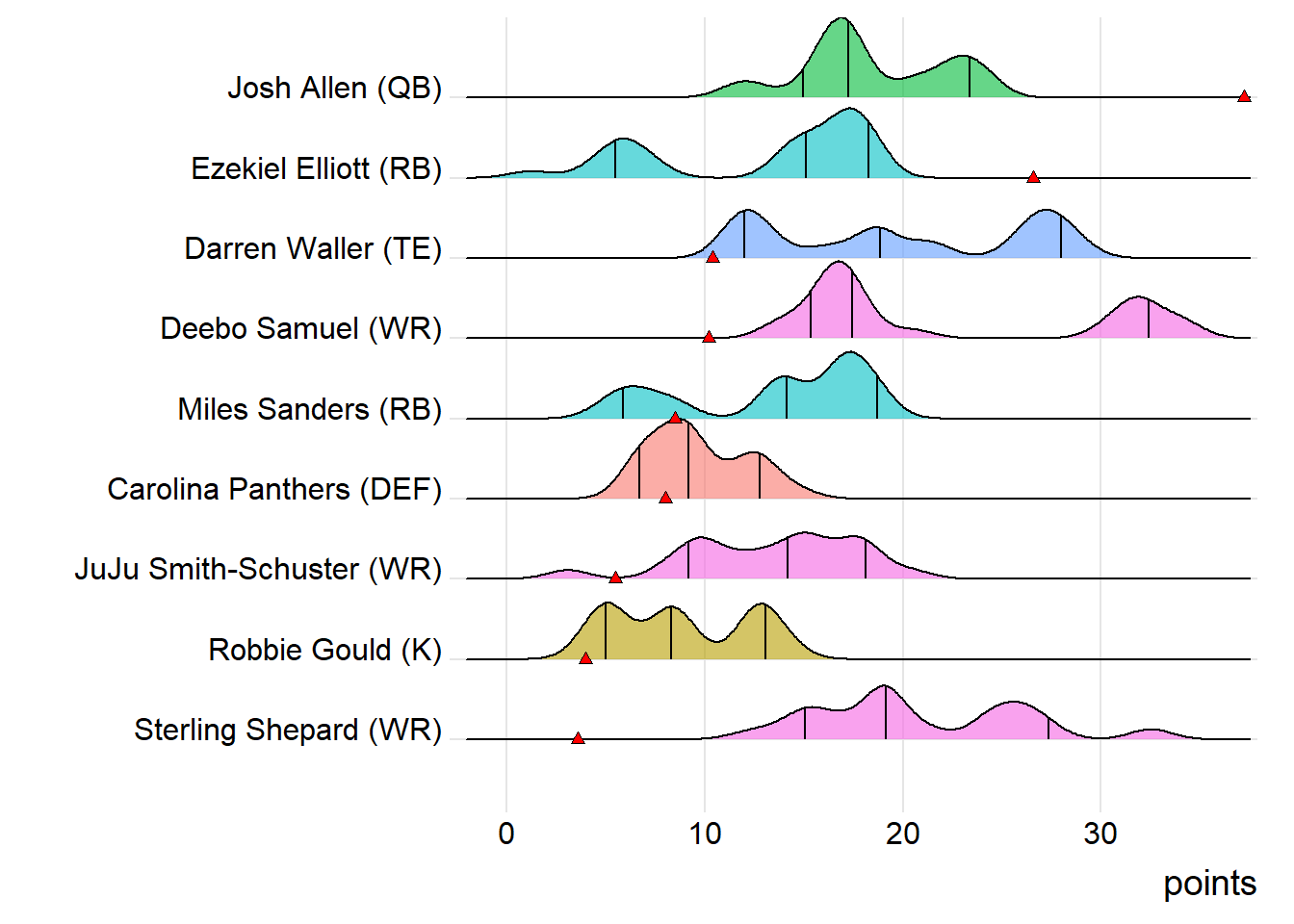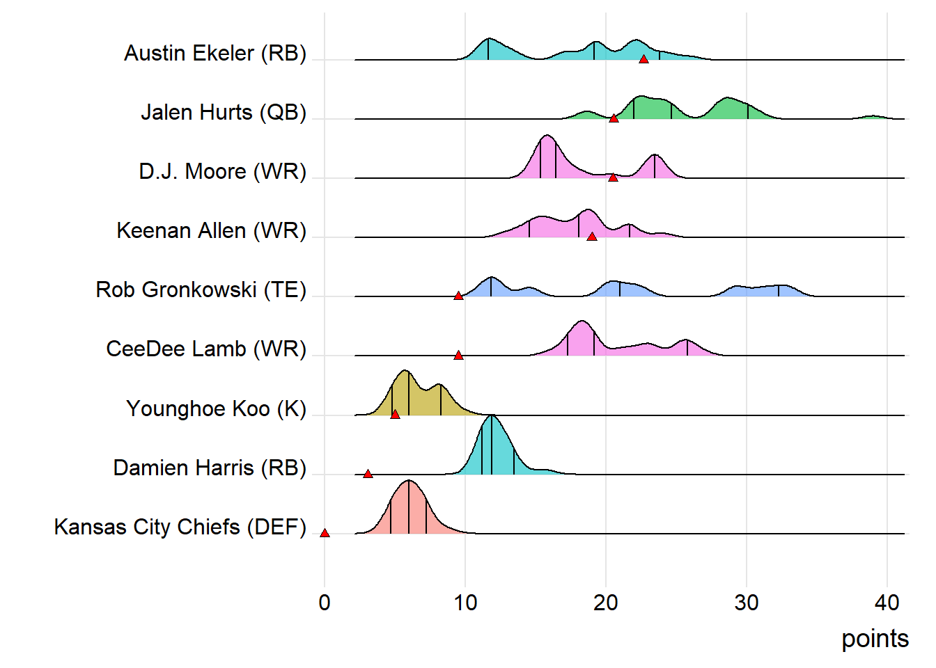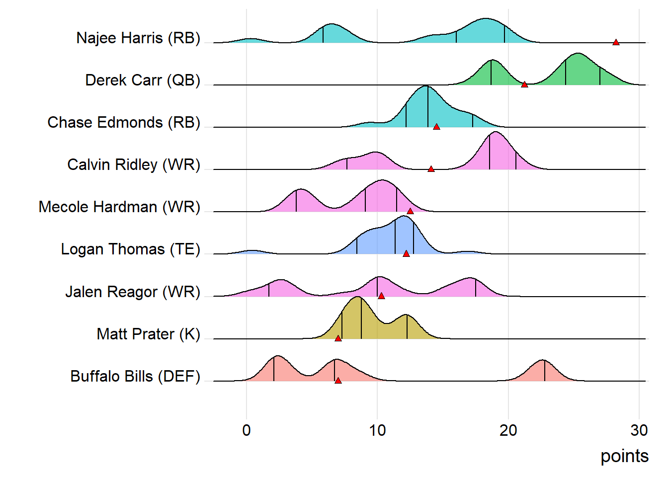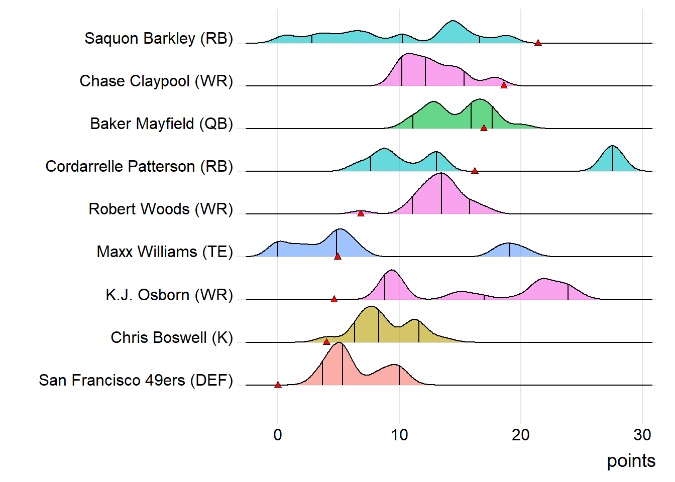 First-round draft picks averaged 17.24 points this week. Second-round players averaged 12.91, which was actually less than the third-rounders (14.42).