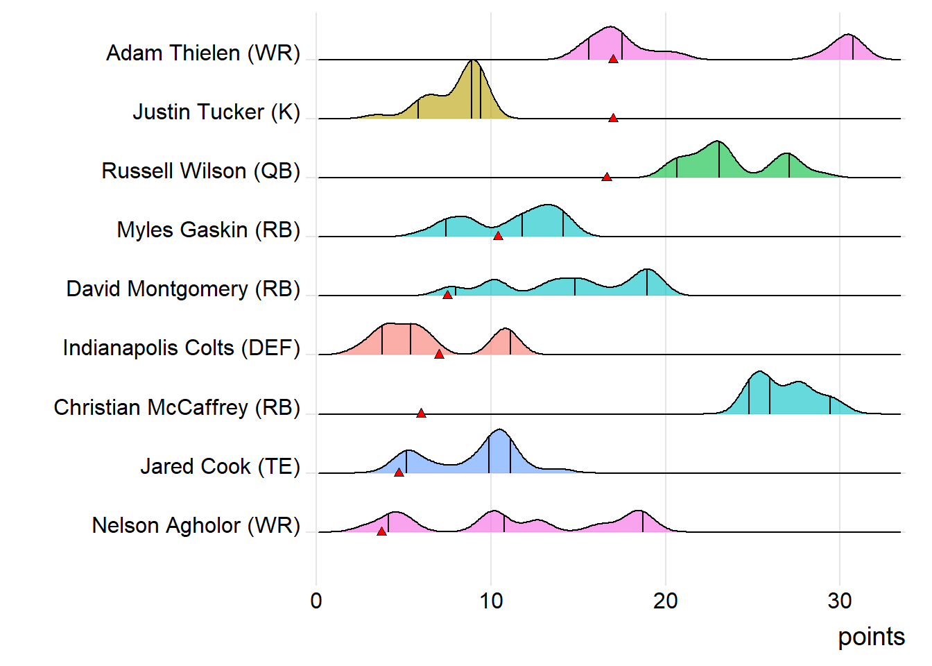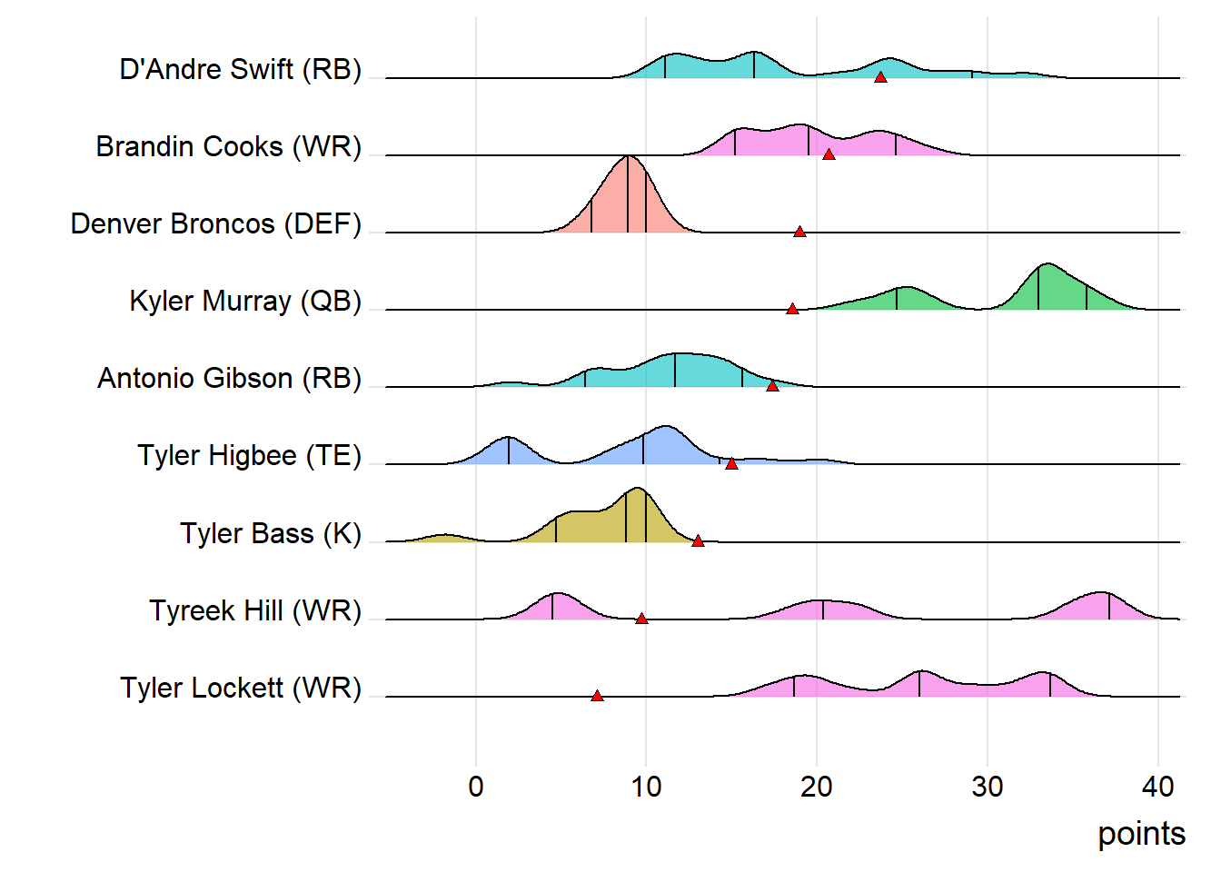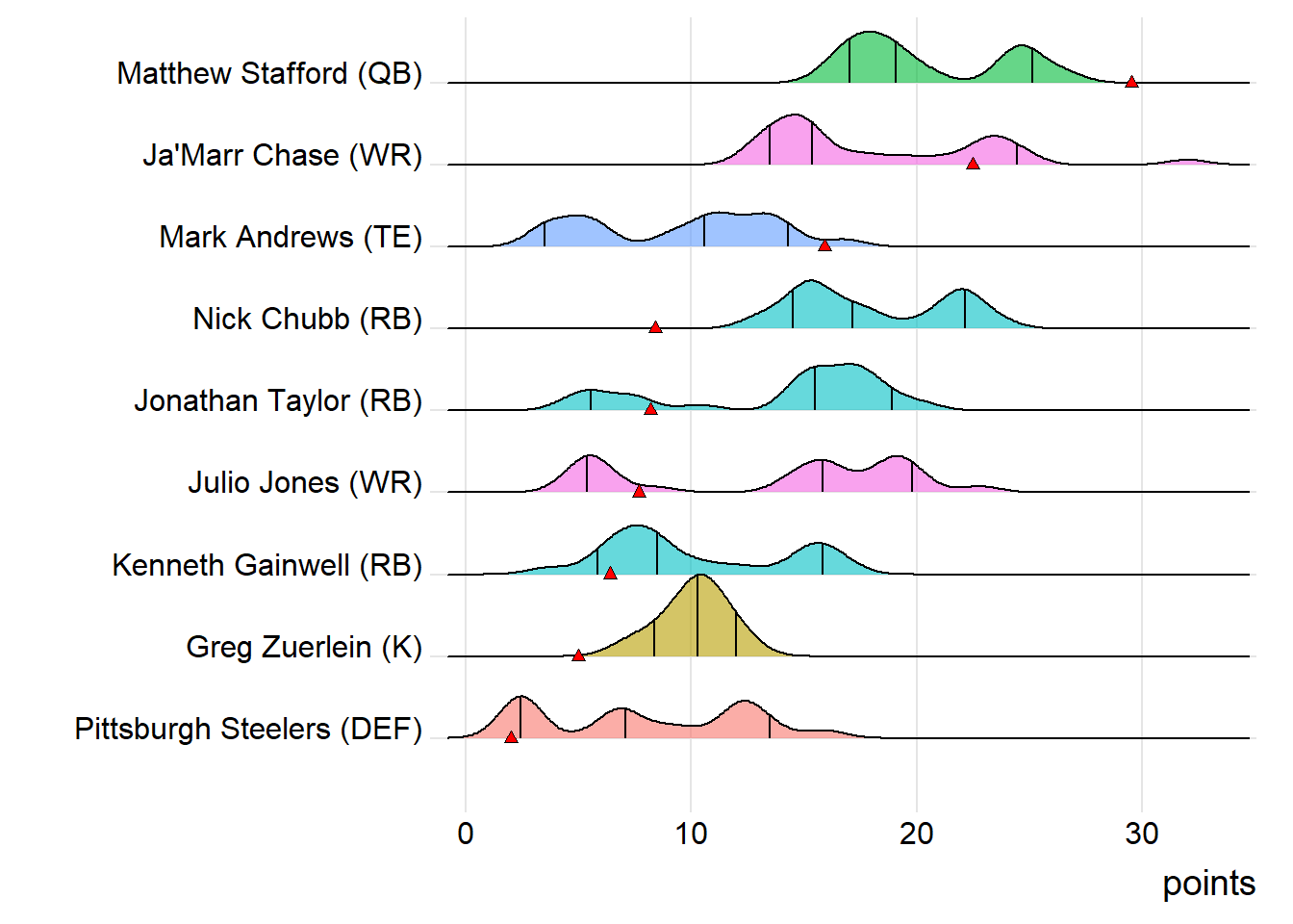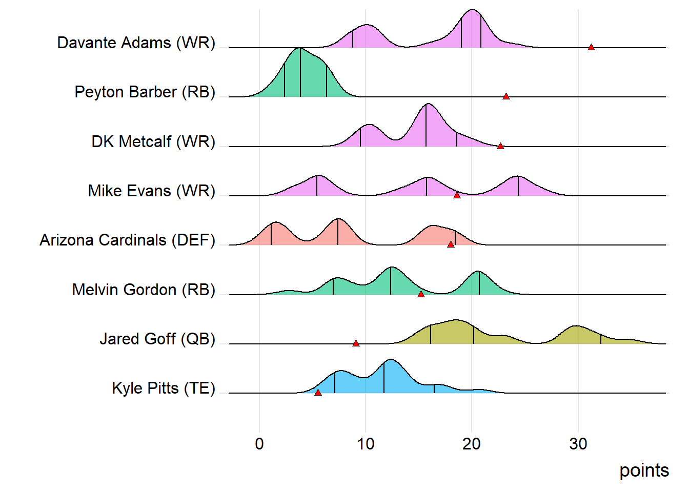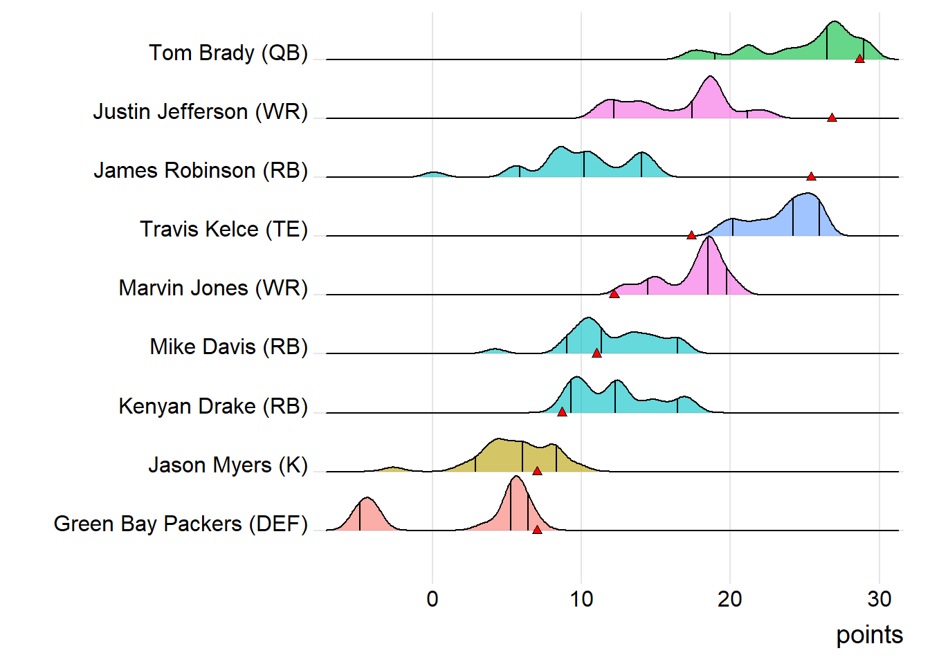 First-round draft picks averaged 17.24 points this week. Second-round players averaged 12.91, which was actually less than the third-rounders (14.42).