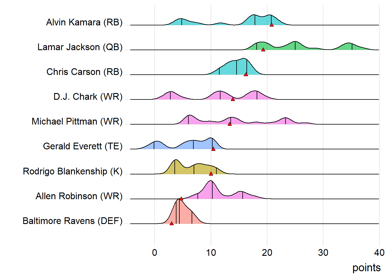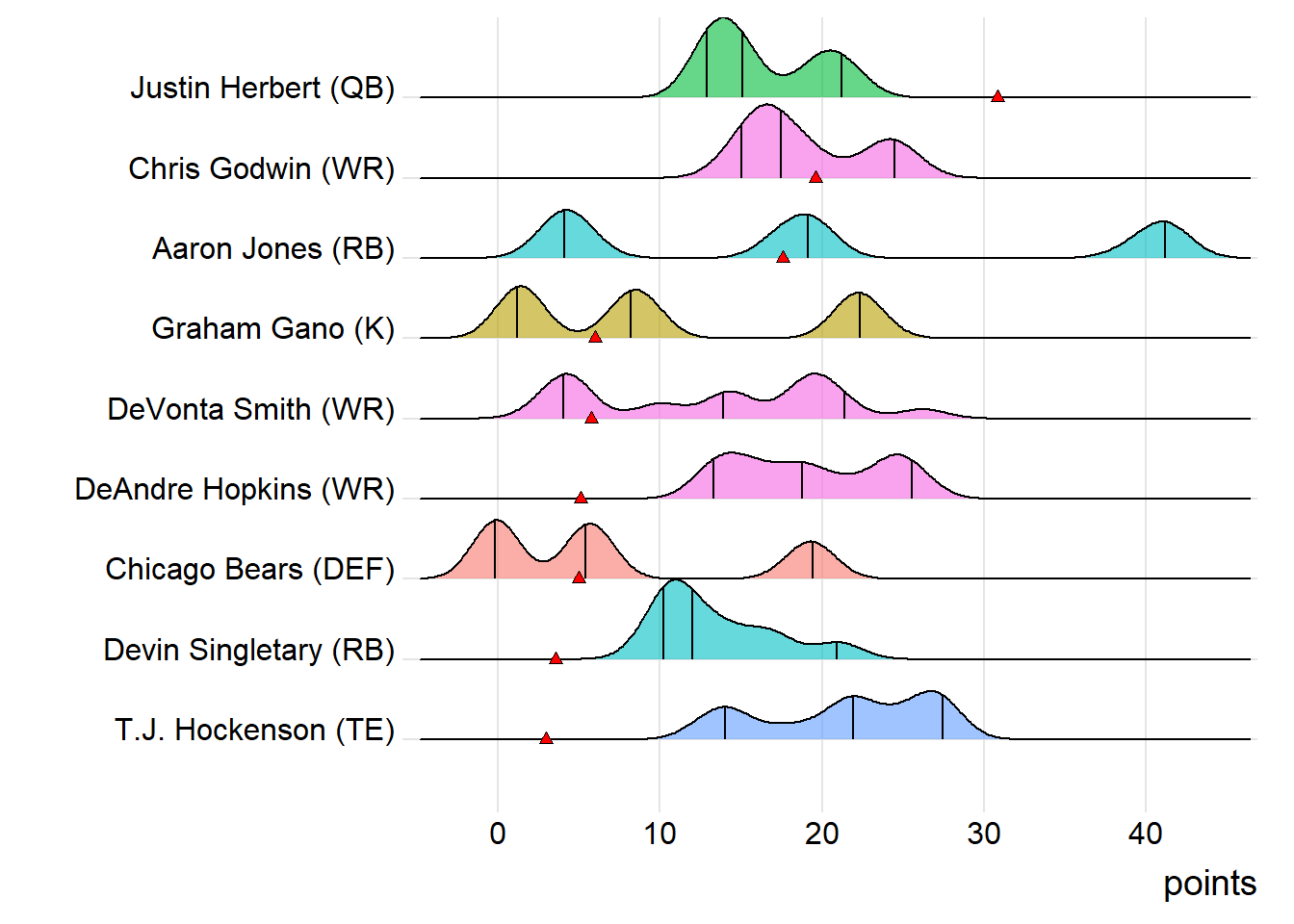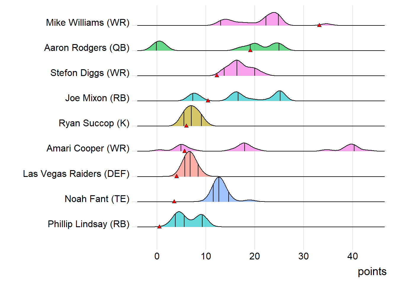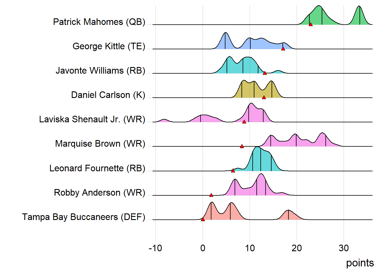 First-round draft picks averaged 17.24 points this week. Second-round players averaged 12.91, which was actually less than the third-rounders (14.42).
