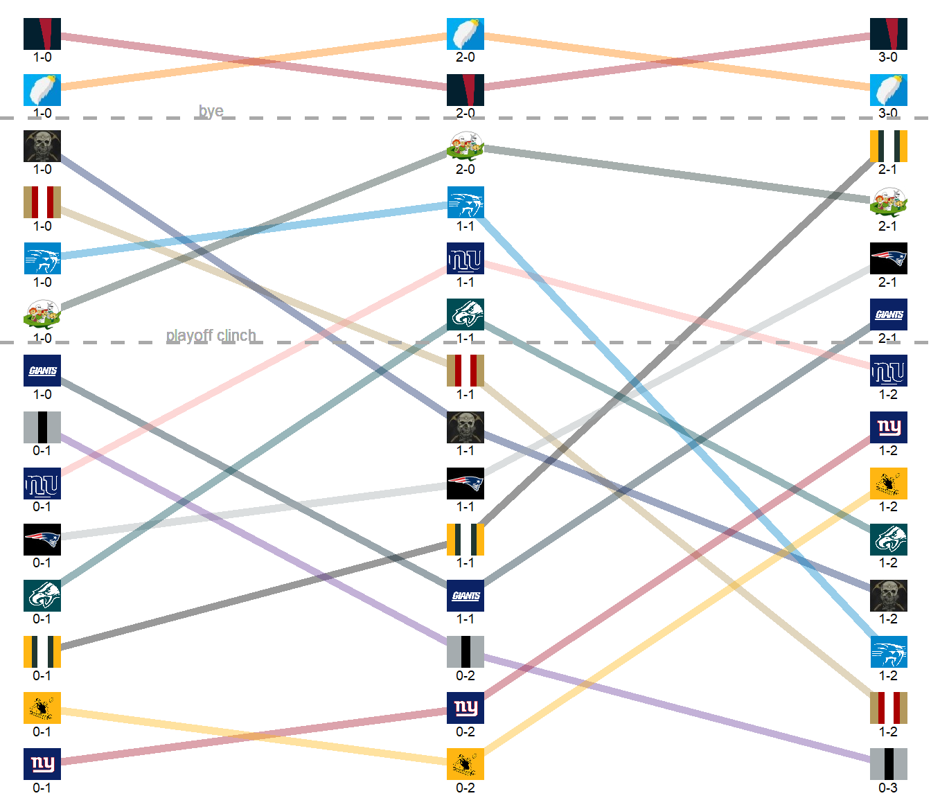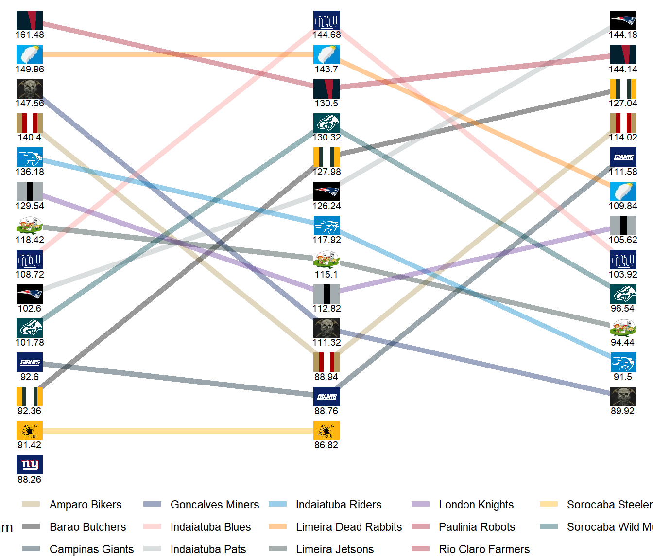 League Leaders: Robots, Rabbits, Butchers, Jetsons, Pats, Giants.