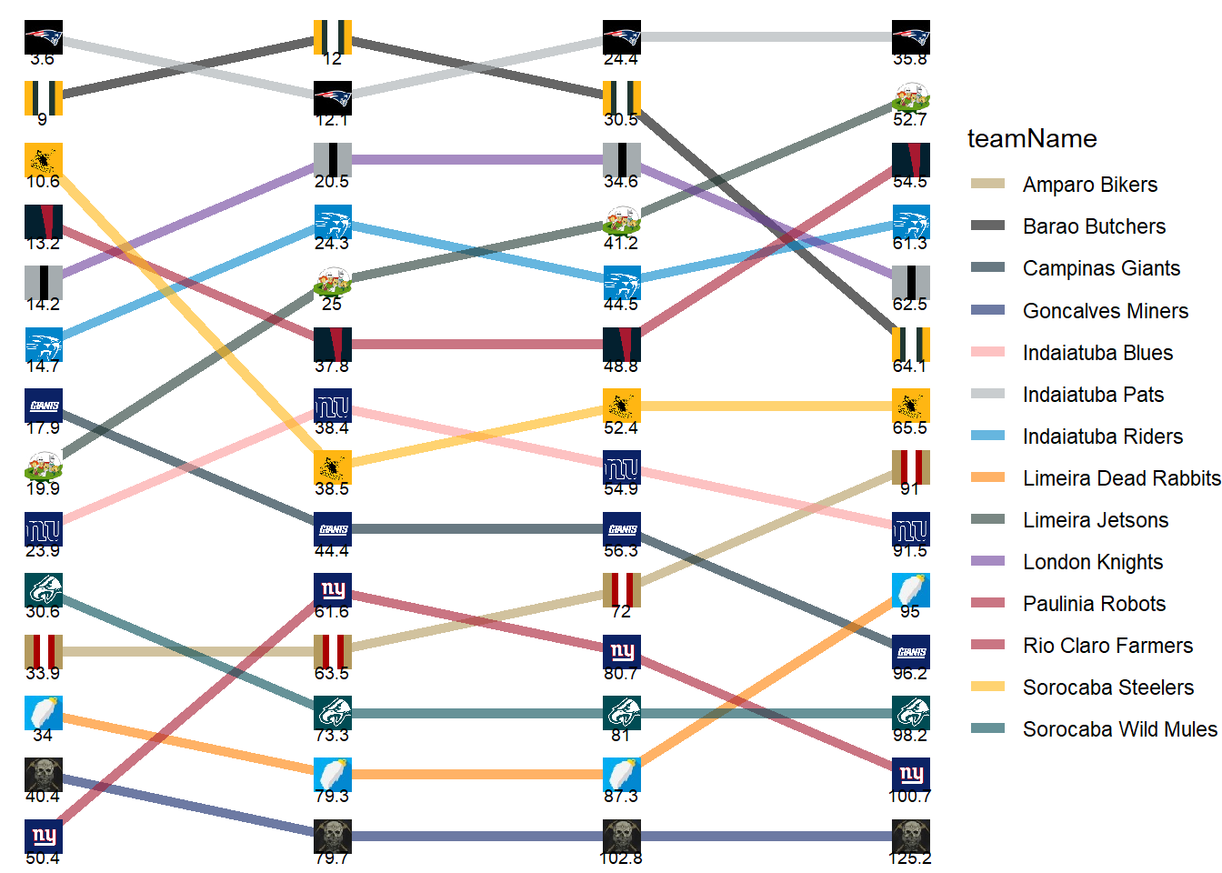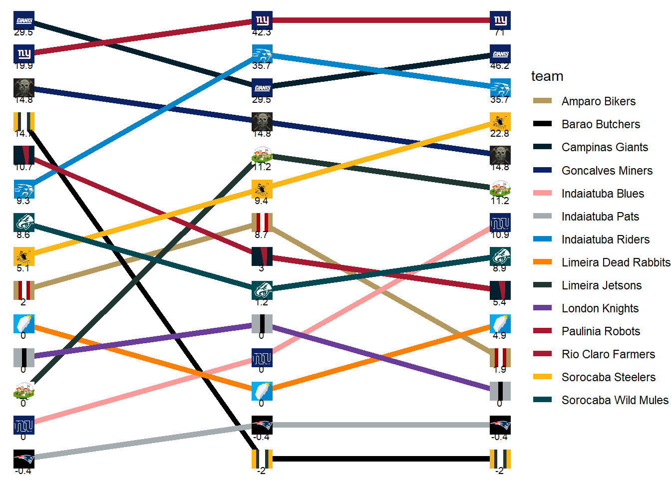 | Indaiatuba Riders | 14.70 | 9.60 | 20.20 | 16.80 |
