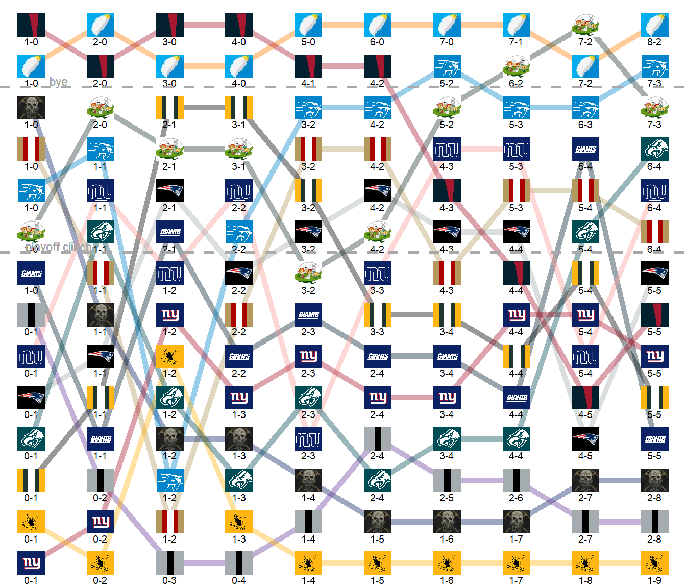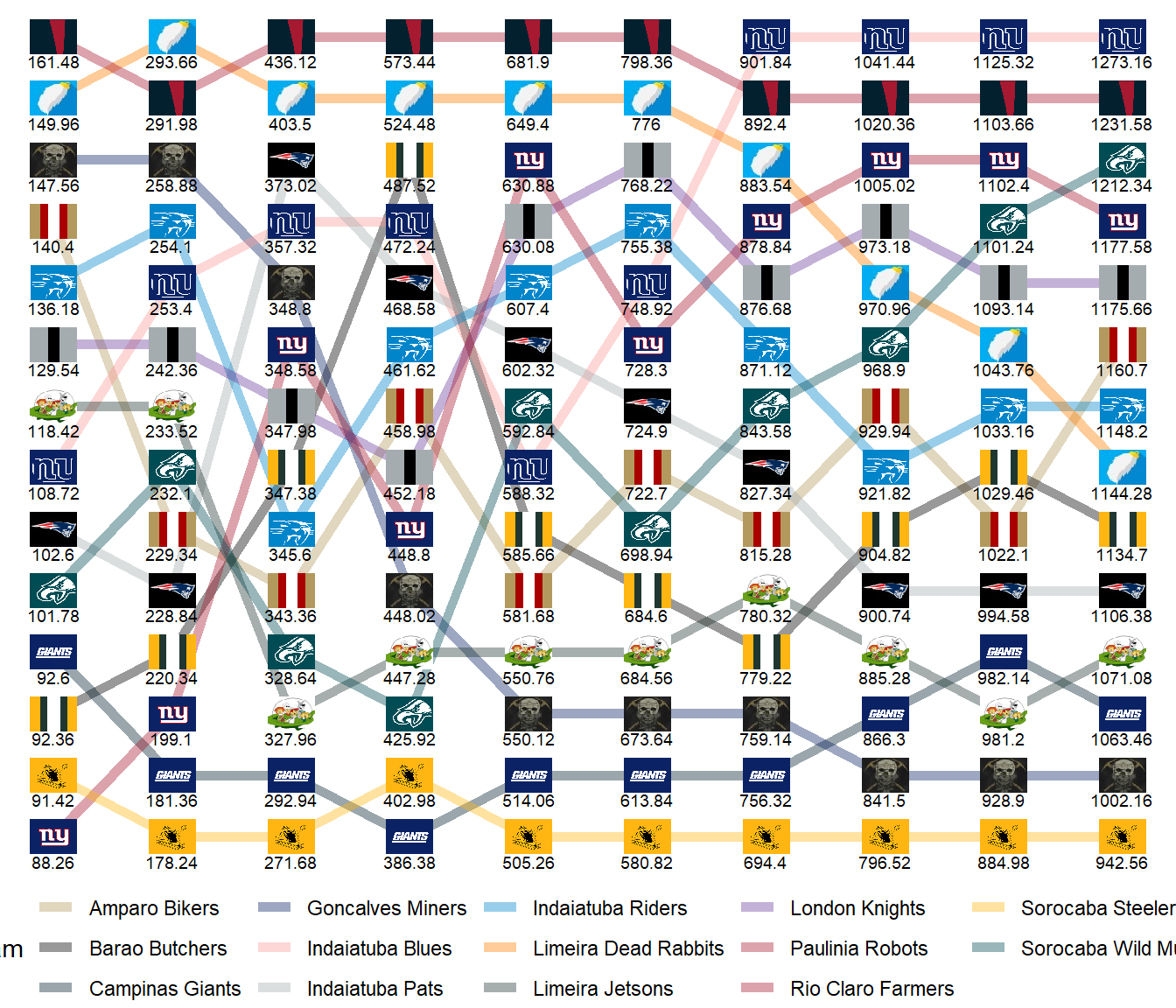 League Leaders: Rabbits, Riders, Jetsons, Mules, Blues, Bikers.