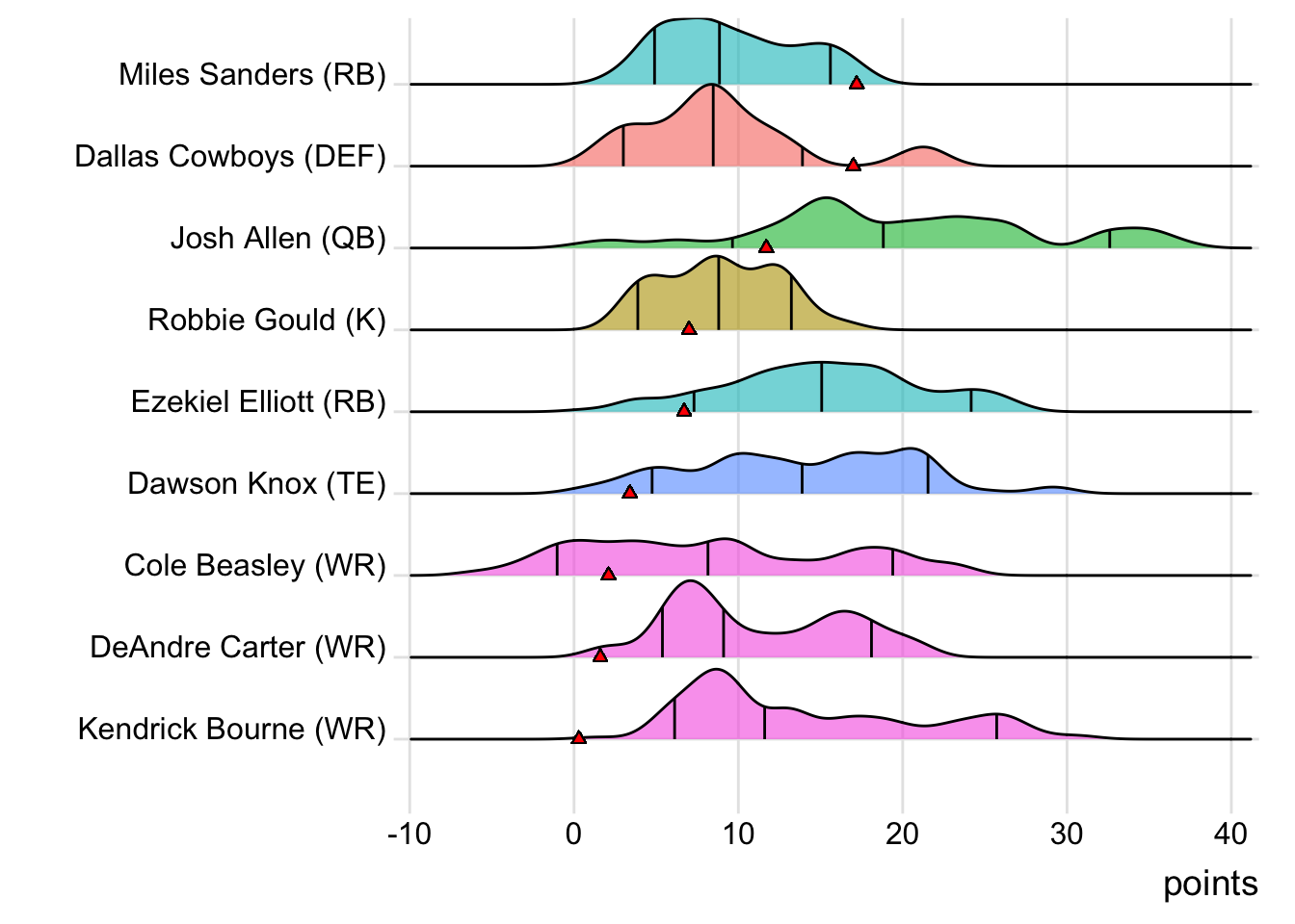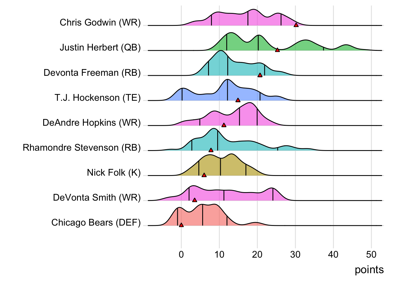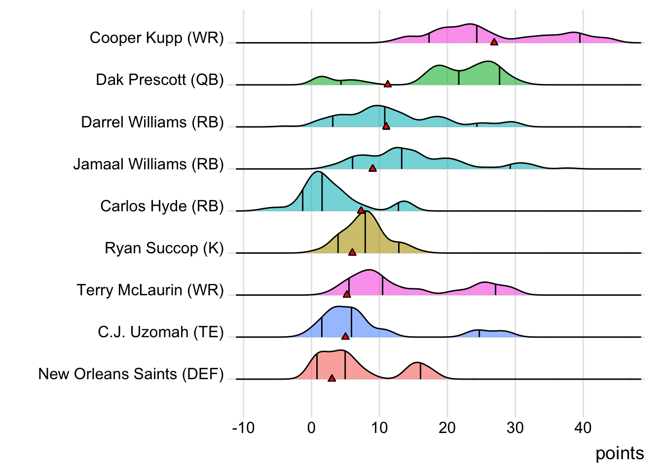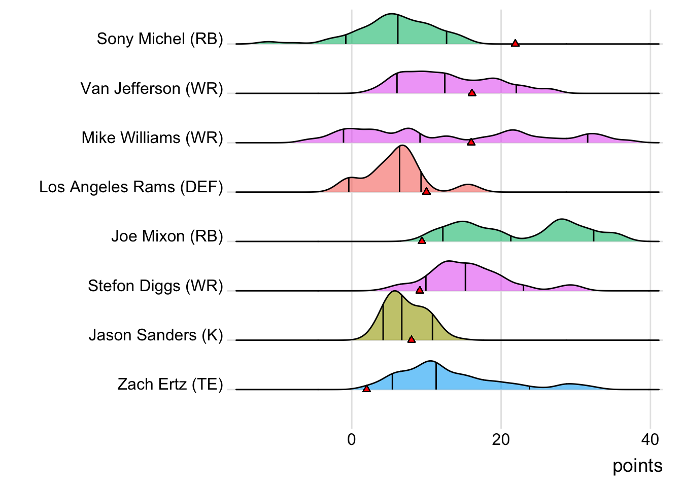 Since Kittle was the leading point-getter for Indaiatuba Riders, it means a different player has now topped the team in each of the past five weeks. With 20.60 points, Marquise Brown paced the squad in Week 9, while Patrick Mahomes put up 36.24 points to lead the way in Week 10. Dalvin Cook (22.50 points) was tops in Week 11 and Leonard Fournette (44.10 points) led in Week 12. It wasn’t all bad news for Limeira Dead Rabbits, as they did field a team of real-life winners. Every starter except Courtland Sutton suited up for an NFL team that won in Week 13. Also, with 19 touches this week for Austin Ekeler, it means that his touches have now increased in three consecutive games.