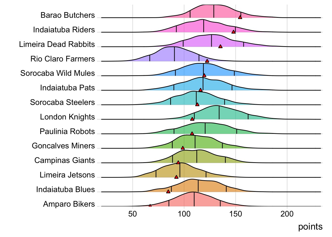 This week’s second- and third-highest-scoring teams met in an epic battle as Indaiatuba Riders came back to defeat Limeira Dead Rabbits 147.96 to 135.26. This is the most a team has scored this season without getting a victory. Limeira Dead Rabbits falls to 10-3 (1st place) and snaps a three-game winning streak. Indaiatuba Riders (9-4) is in second place, averaging 116.84 points per game. With the victory, Indaiatuba Riders clinches a playoff berth this week. The score from Indaiatuba Riders was unexpected given that they were only expected to score 110.53 points. Limeira Dead Rabbits scored 122.0% of their projected 110.90. George Kittle (181 Rec Yds, 2 TD) registered the highest score this week (39.60) and Javonte Williams scored 29.80 points to lead Indaiatuba Riders. Keenan Allen (34 Rec Yds, 2 TD) got 22.40 points for Limeira Dead Rabbits.