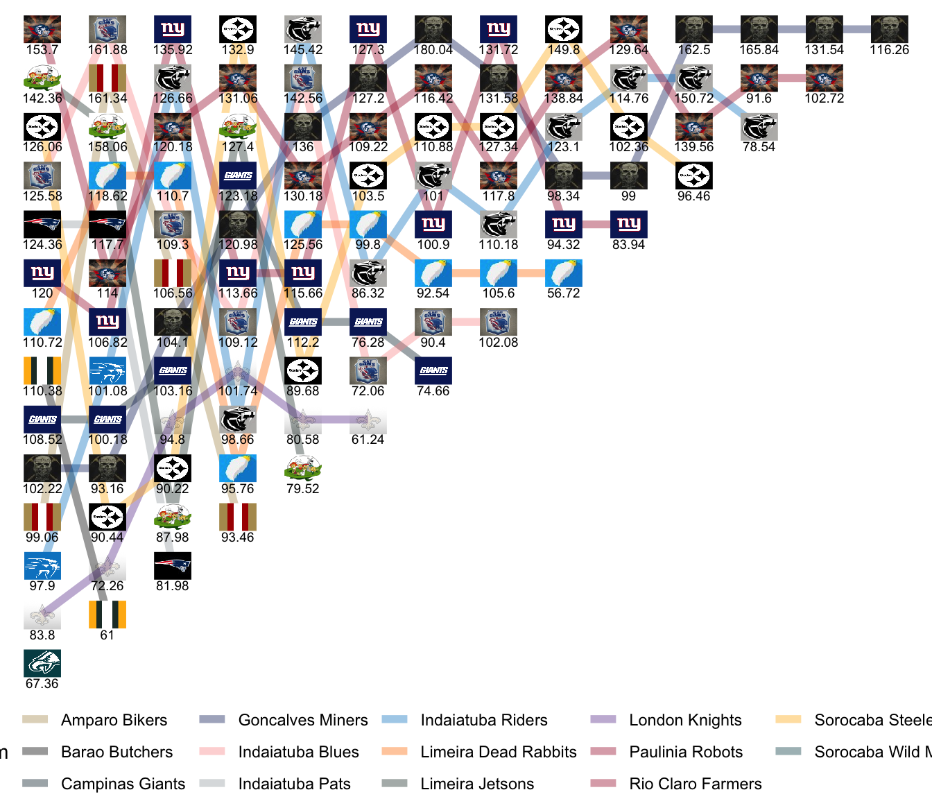 Limeira Dead Rabbits | 6-8-0 | 1394.72 | 1550.46 |