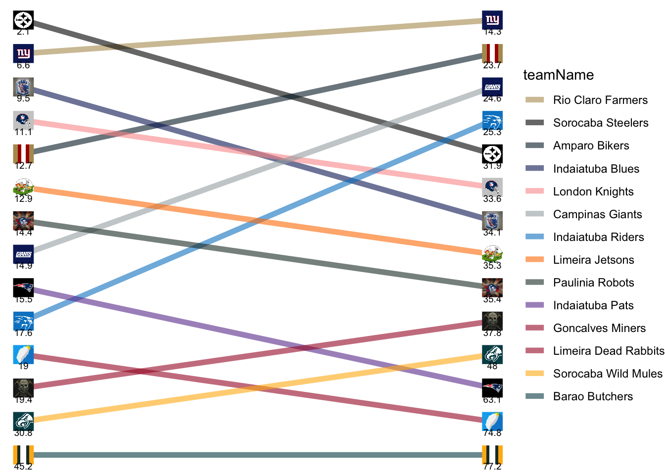 | Limeira Dead Rabbits | 19.00 | 55.78 |