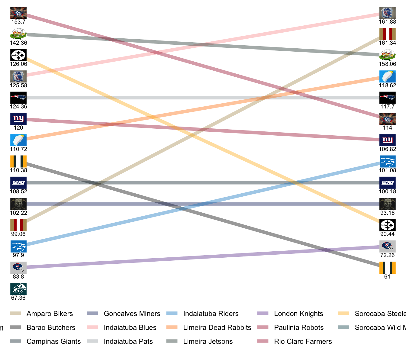 League Leaders: Jetsons, Robots, Pats, Farmers, Blues, Steelers.
