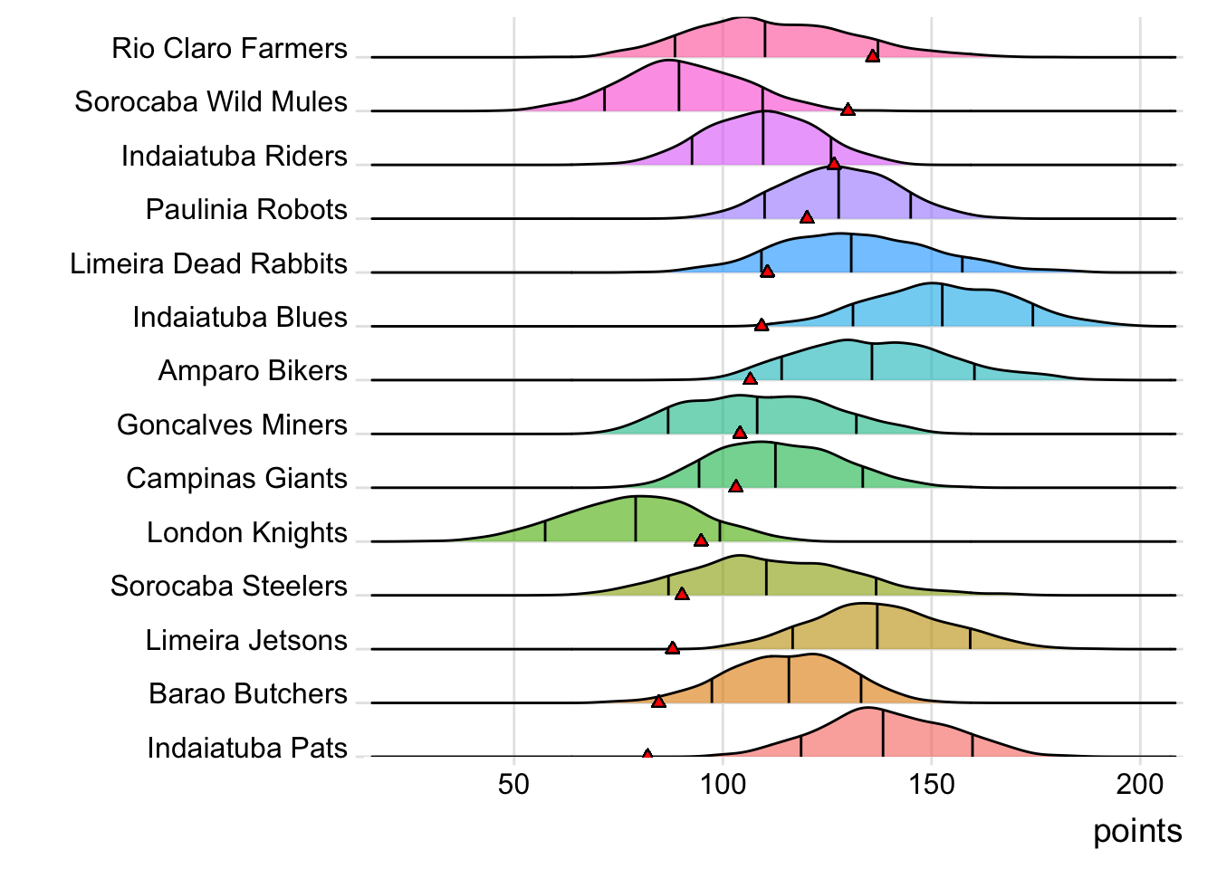 Indaiatuba Riders was favored by the widest margin in the league this week (35.63 points) and delivered with a 36.44-point victory.