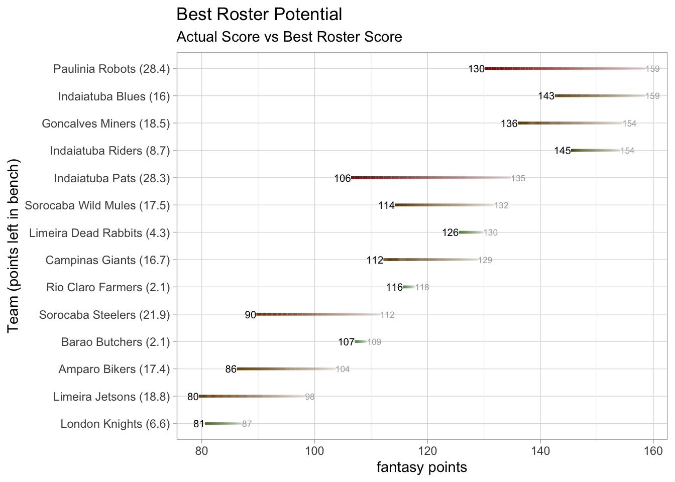 Paulinia Robots has now beaten their weekly score projection in each matchup this season.