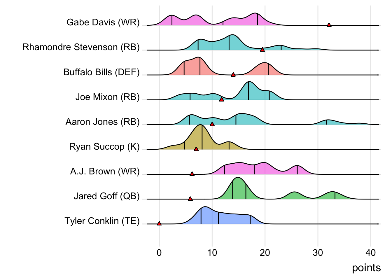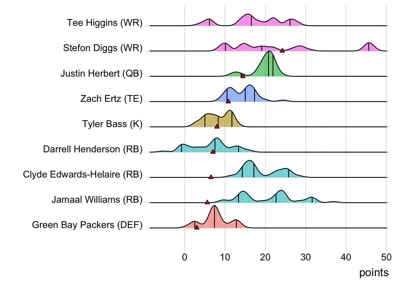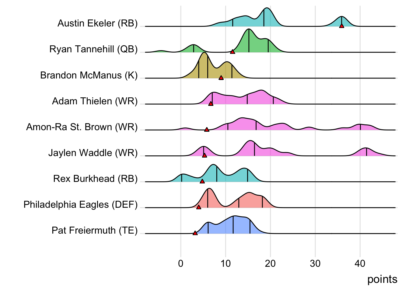 Along with being the one defense to earn a negative score, the Miami Dolphins DEF (on London Knights) represented the lone starter in the whole league to do so. In addition, they had a starter that missed out on some chances. Despite being targeted nine times, Deebo Samuel could only manage two catches.