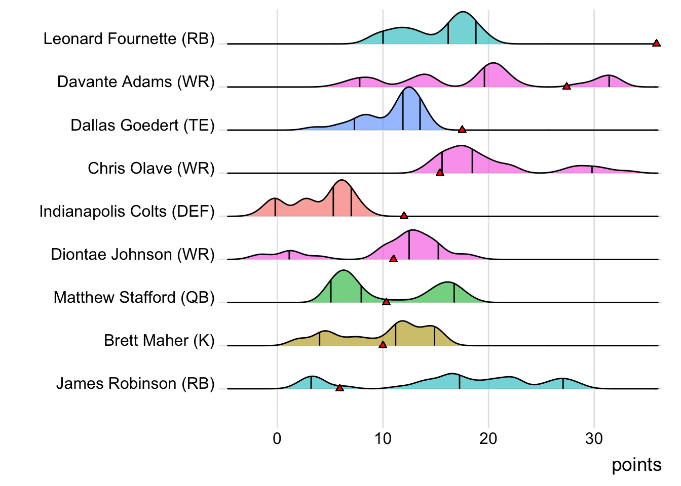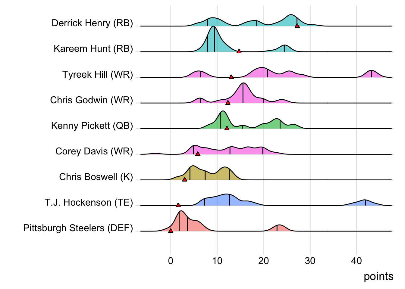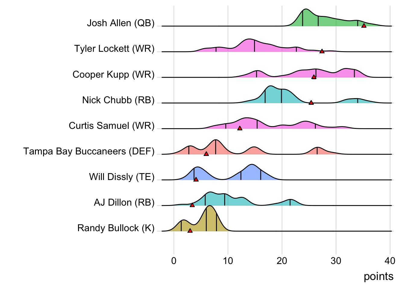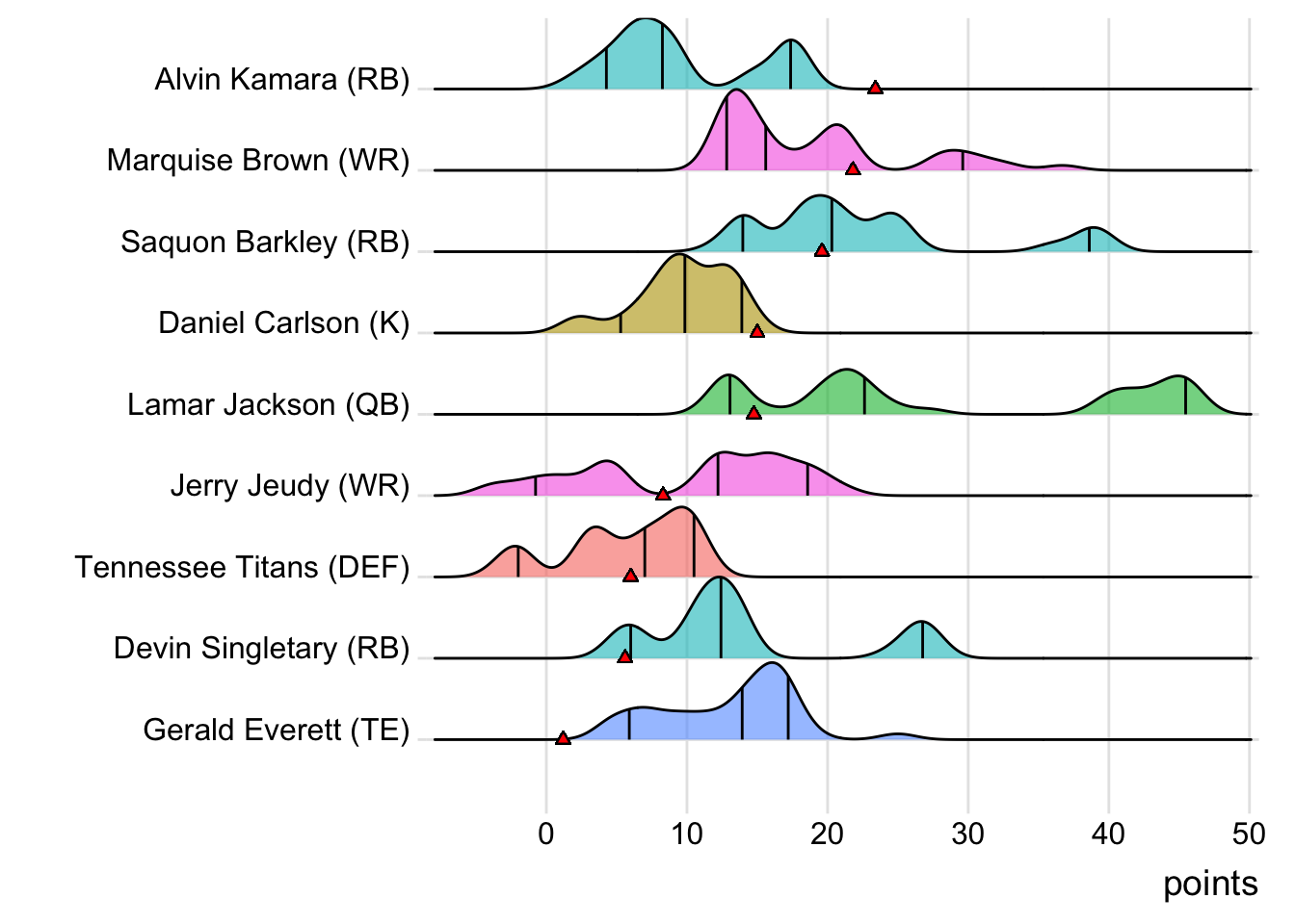 Along with being the one defense to earn a negative score, the Miami Dolphins DEF (on London Knights) represented the lone starter in the whole league to do so. In addition, they had a starter that missed out on some chances. Despite being targeted nine times, Deebo Samuel could only manage two catches.