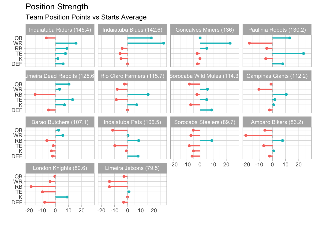 Sorocaba Steelers, Amparo Bikers, and Indaiatuba Riders all won this week, even though none of them had a top-15 scoring QB.