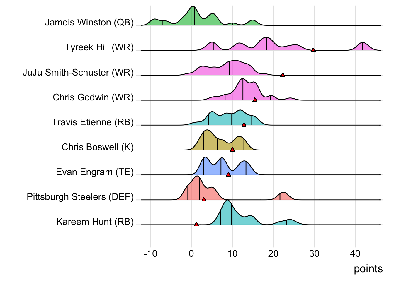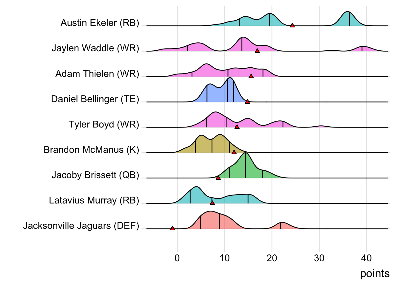 Along with being the one defense to tally a negative score, the Jacksonville Jaguars DEF (on Amparo Bikers) represented the lone starter in the whole league in the red. Ekeler had lots of opportunities for Amparo Bikers, but could manage just 83 total yards on 24 touches.