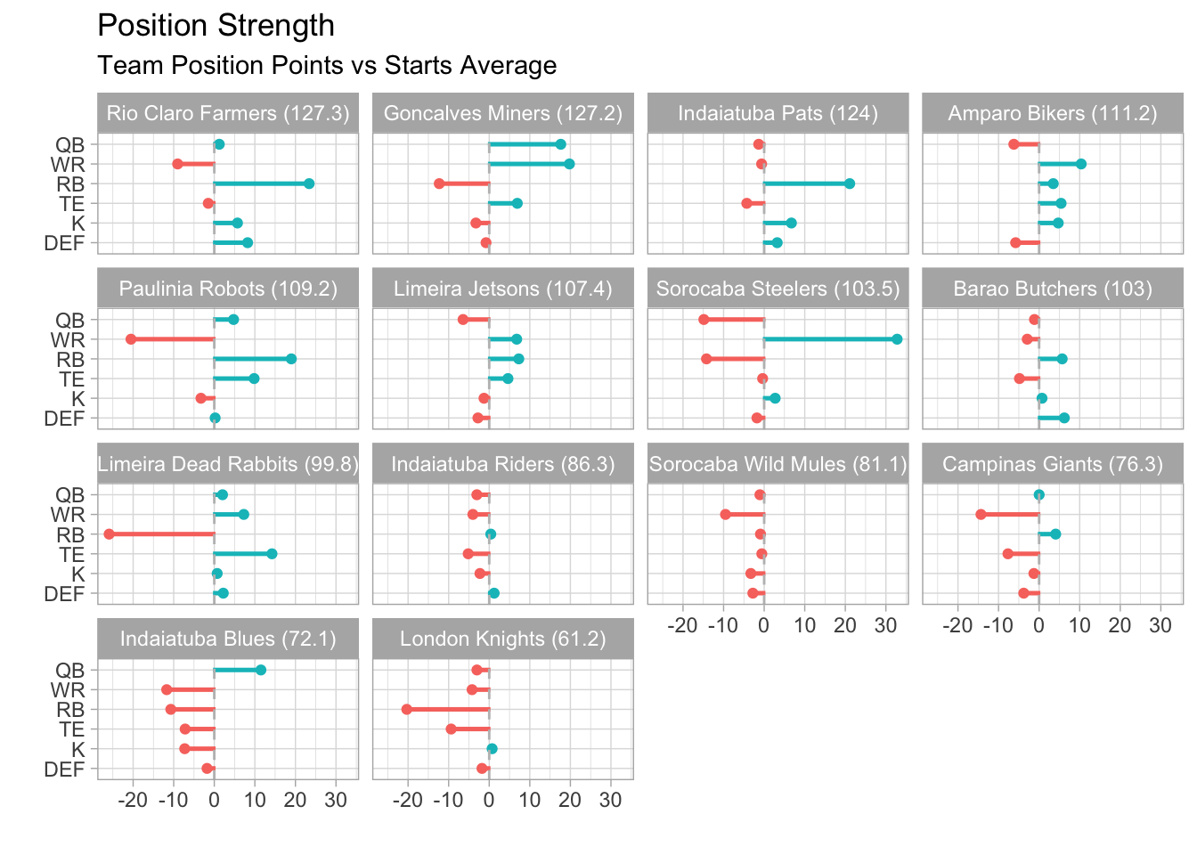 Limeira Dead Rabbits won this week, even without starting a top-30 scoring RB.