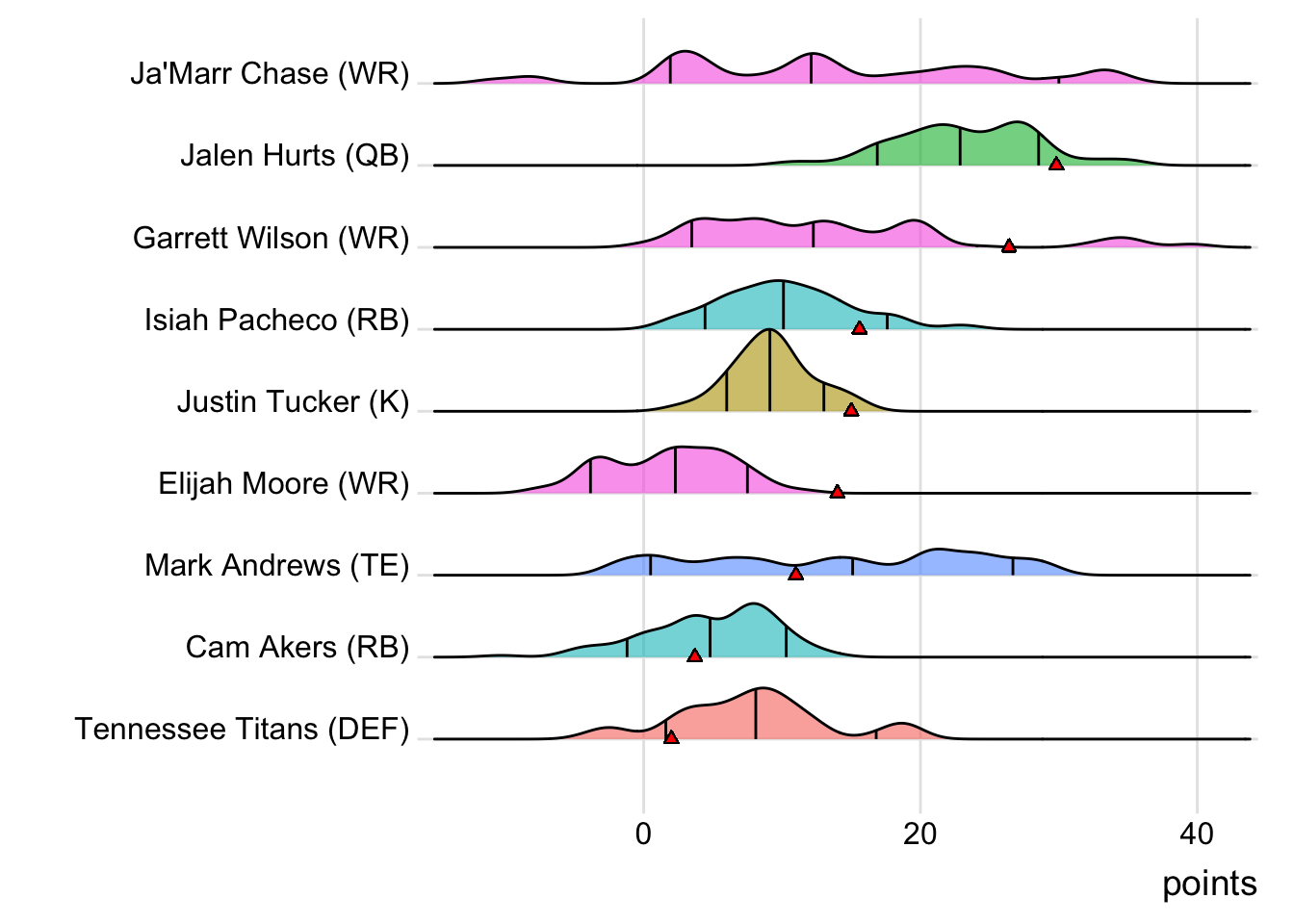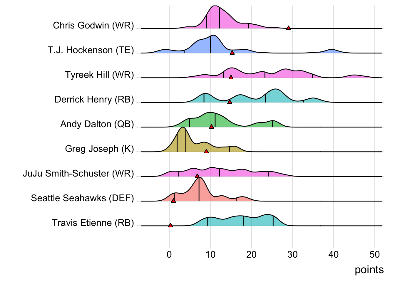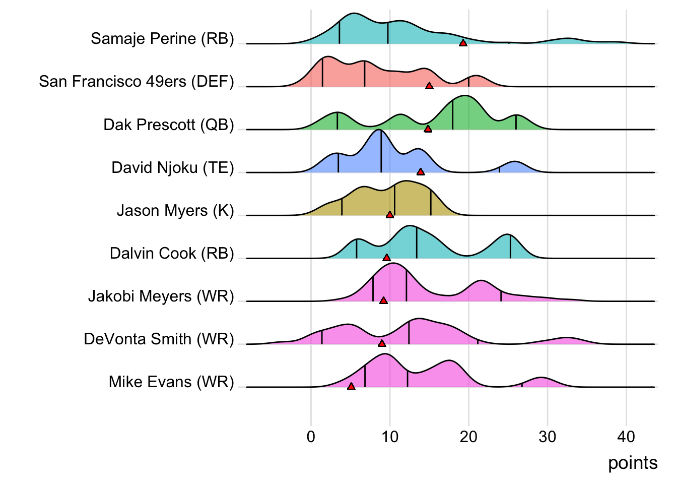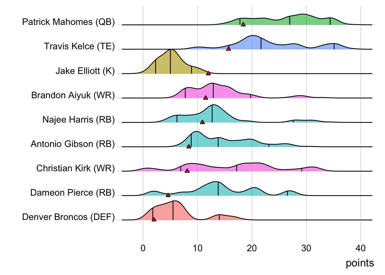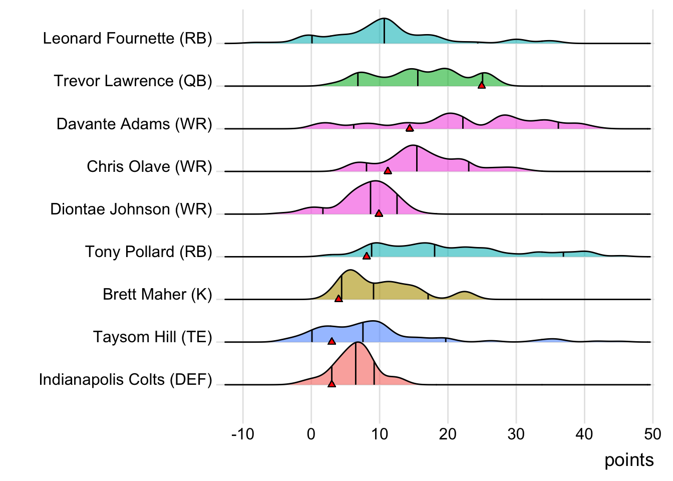 Since Schultz was the high scorer for London Knights, it means that a different player has now led the team in each of the past six weeks. With 18.30 points, Terry McLaurin paced the squad in Week 7, while D’Onta Foreman (31.80 points) was team-leader in Week 8 and Nick Folk (14.00 points) led the way in Week 9. CeeDee Lamb (38.00 points) was tops in Week 10 and Deebo Samuel (22.40 points) led last week.