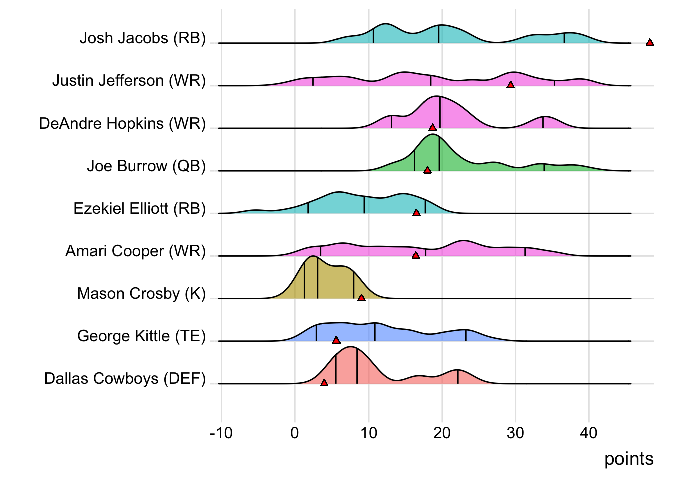 While Amari Cooper led Goncalves Miners last week with 31.30 points, Jacobs paved the way this week with 48.30. Also, with 17 touches this week for Ezekiel Elliott, it means that his touches have now increased in three consecutive games.