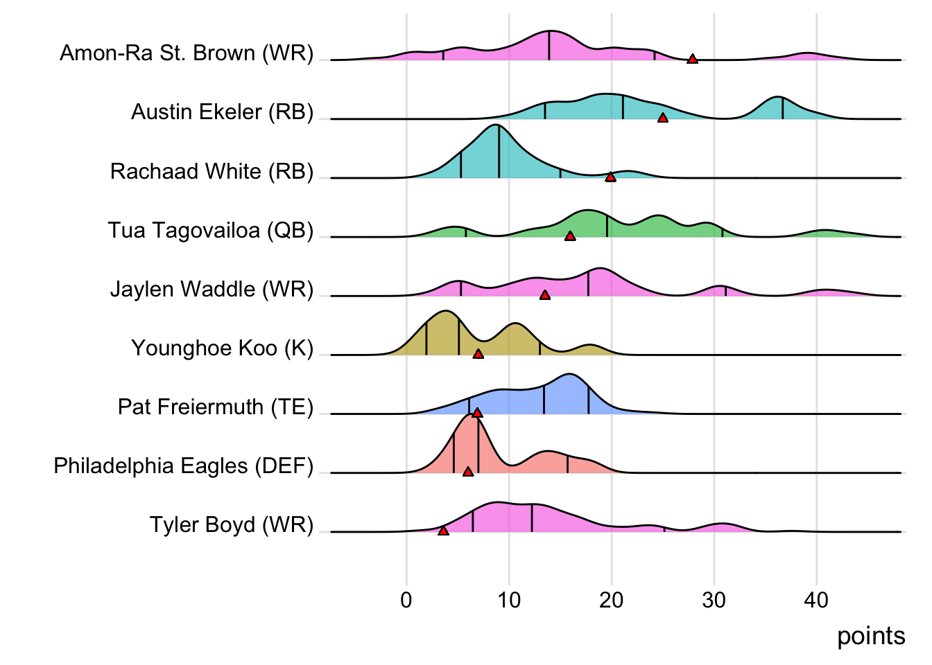 While Jimmy Garoppolo led Amparo Bikers weeks (with 25.42 points), St. Brown has now been the team’s leading scorer in two of the past three matches.