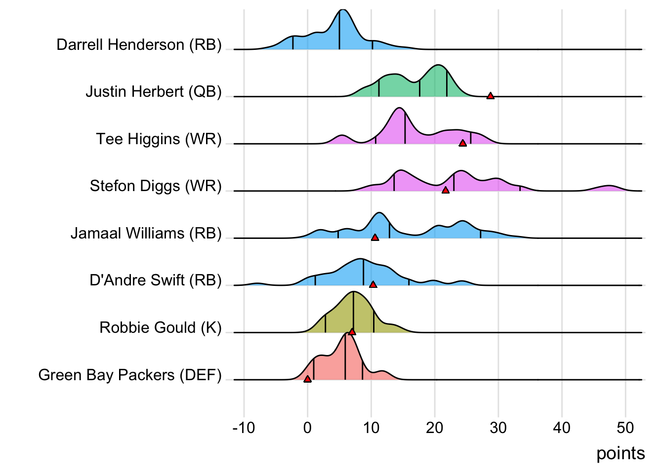 Since Herbert was the top point-getter for Limeira Jetsons, it means a different player has led the team in each of the last four weeks. With 27.90 points, Kenneth Walker III paced the squad in Week 9, while Stefon Diggs (24.80 points) was tops in Week 10 and Jamaal Williams (24.40 points) last week.