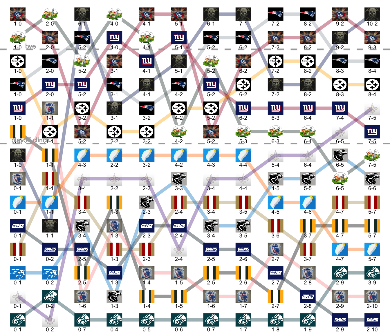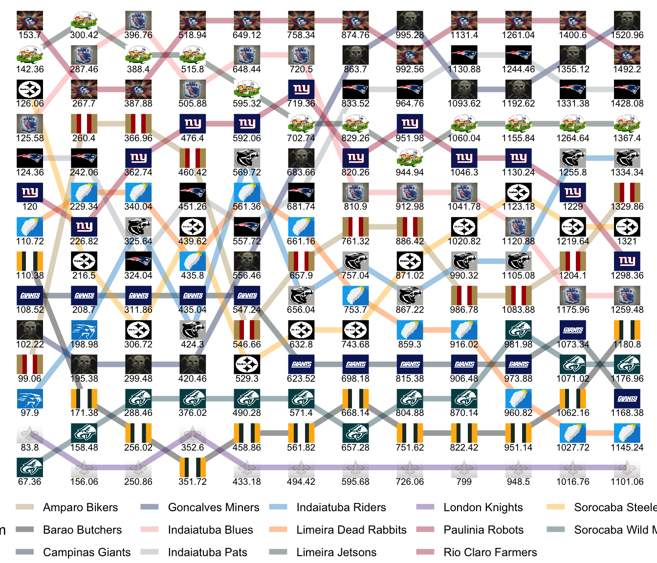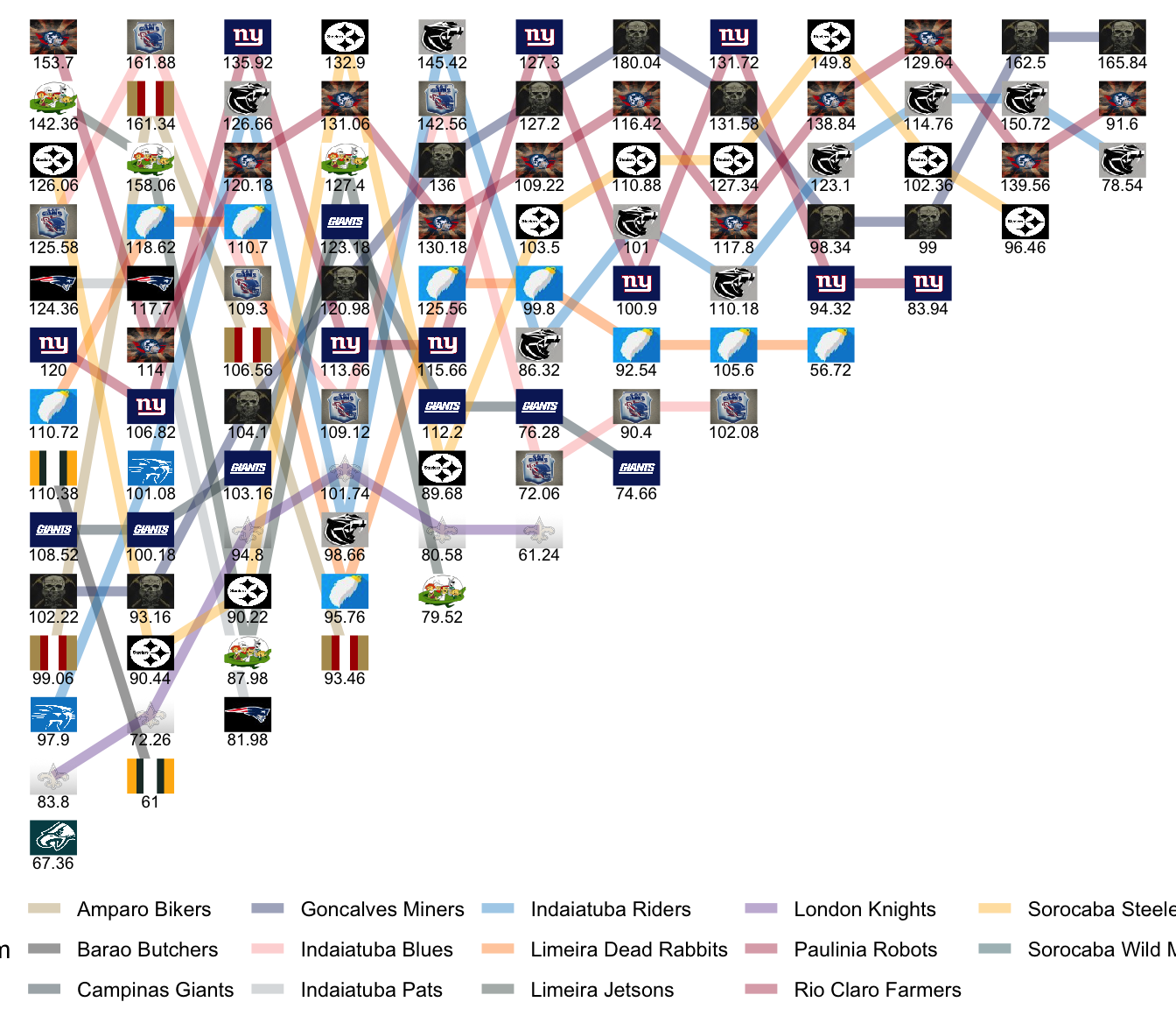 League Leaders: Miners, Robots, Pats, Steelers, Knights, Farmers.