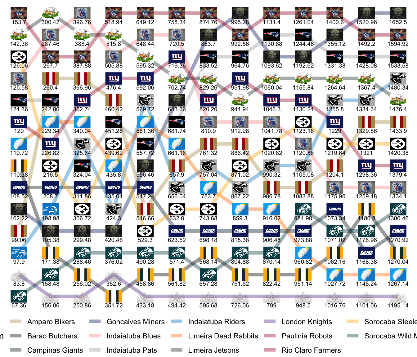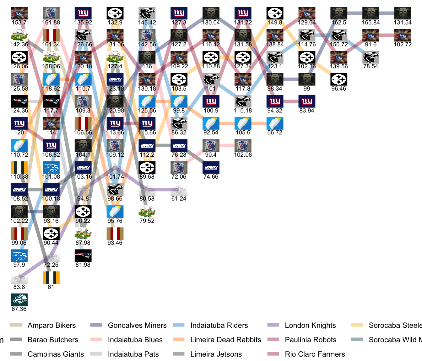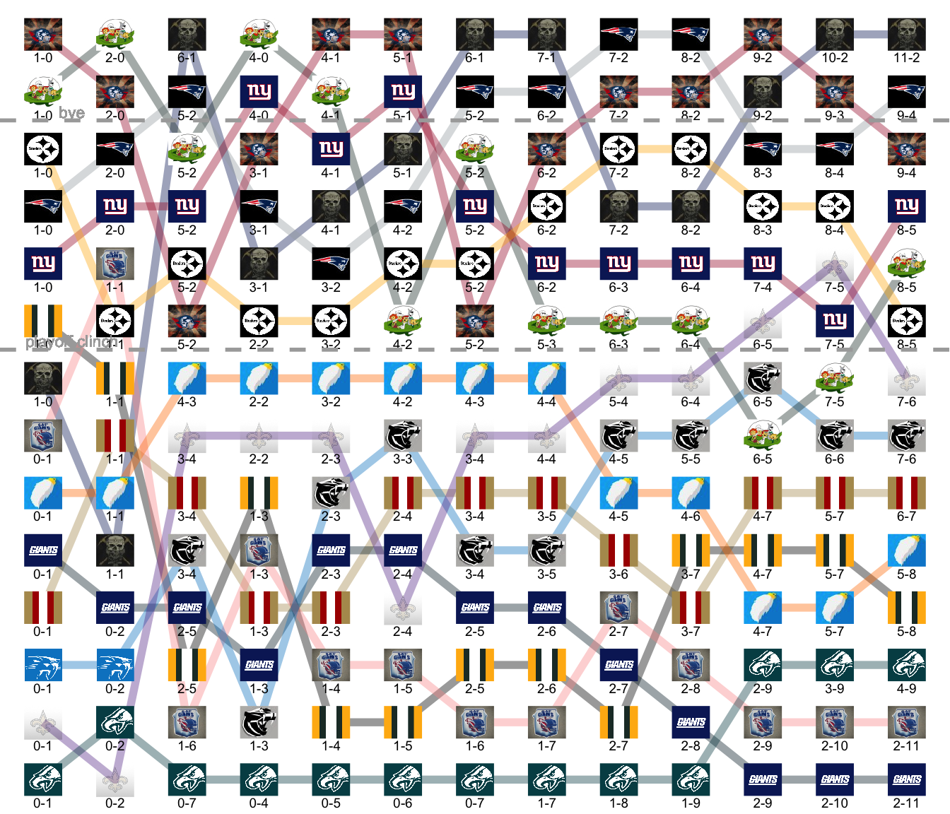 League Leaders: Miners, Pats, Robots, Farmers, Jetsons, Steelers.