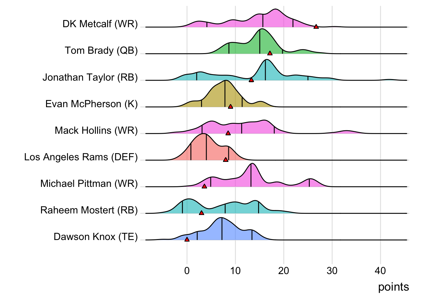 Since Smith was the top point-getter for Sorocaba Wild Mules, it means a different player has led the team in each of the last four weeks. With 23.60 points, Dalvin Cook paced the squad in Week 10, while Dak Prescott (20.64 points) was tops in Week 11 and Samaje Perine (19.30 points) last week.