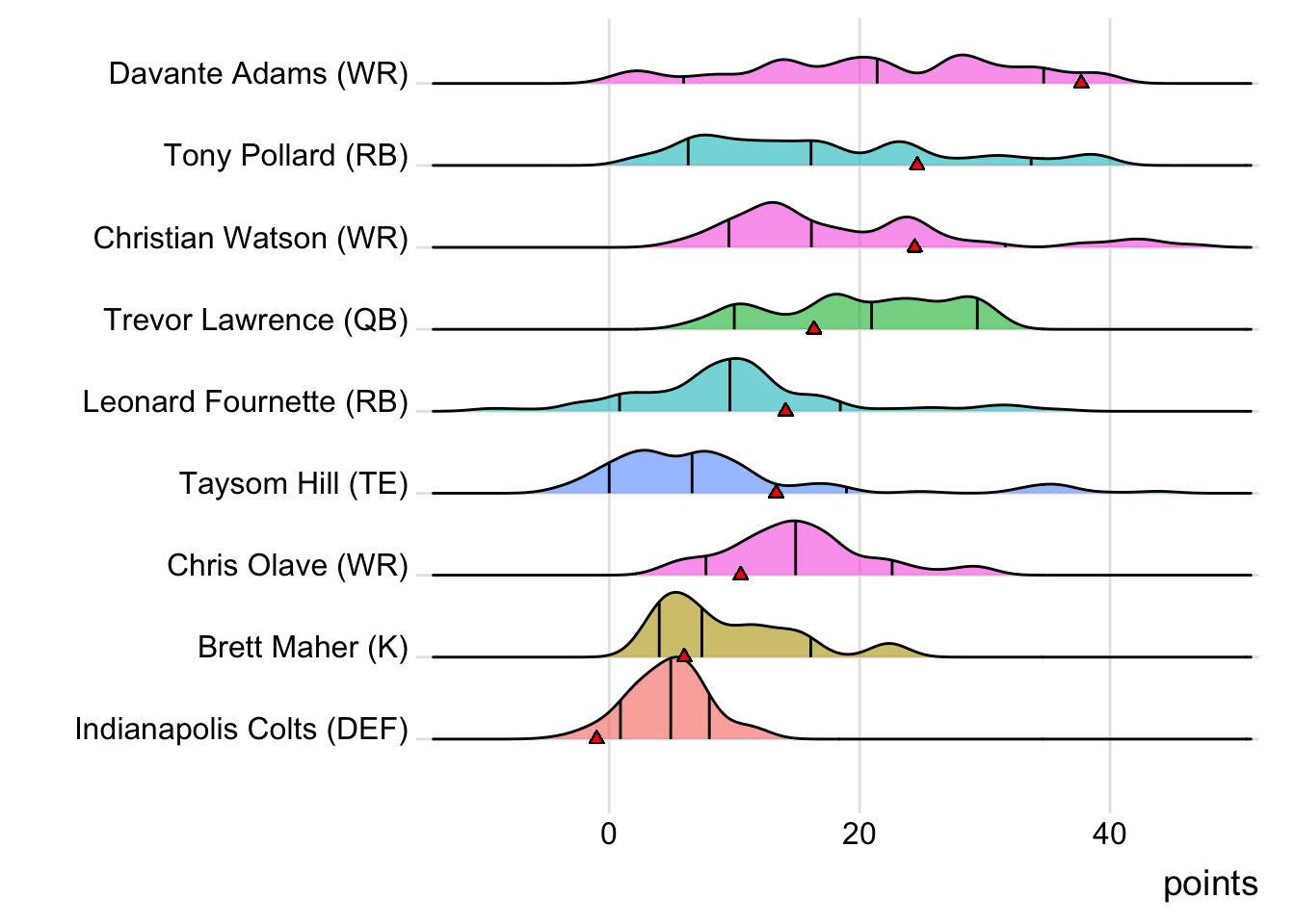 While Tony Pollard led Indaiatuba Riders in Week 11 (with 36.90 points) and Trevor Lawrence weeks (24.94 points), Adams has now been the team’s top point-getter in three of the past five matches. Additionally, with 16 touches this week for Leonard Fournette, it means that his touches have now increased in four consecutive games.