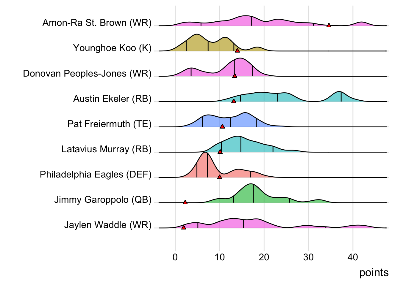 While Devin Singletary led Rio Claro Farmers in Week 11 (with 17.70 points) and Lamar Jackson last week (23.06 points), Barkley has now been the team’s top point-getter twice in the past four weeks.