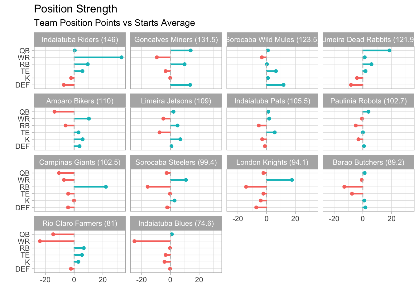 The 146.00 points scored by Indaiatuba Riders were the most this week and the 14th-highest overall in the league this season.