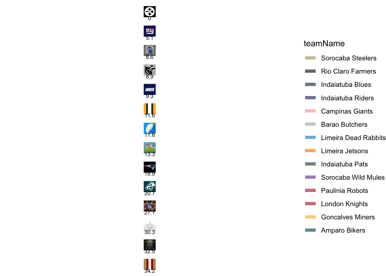 | Indaiatuba Riders | 0.00 |