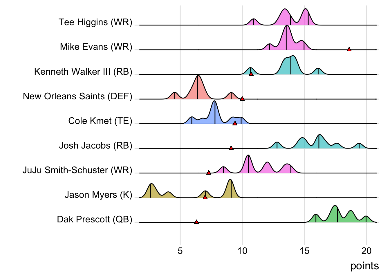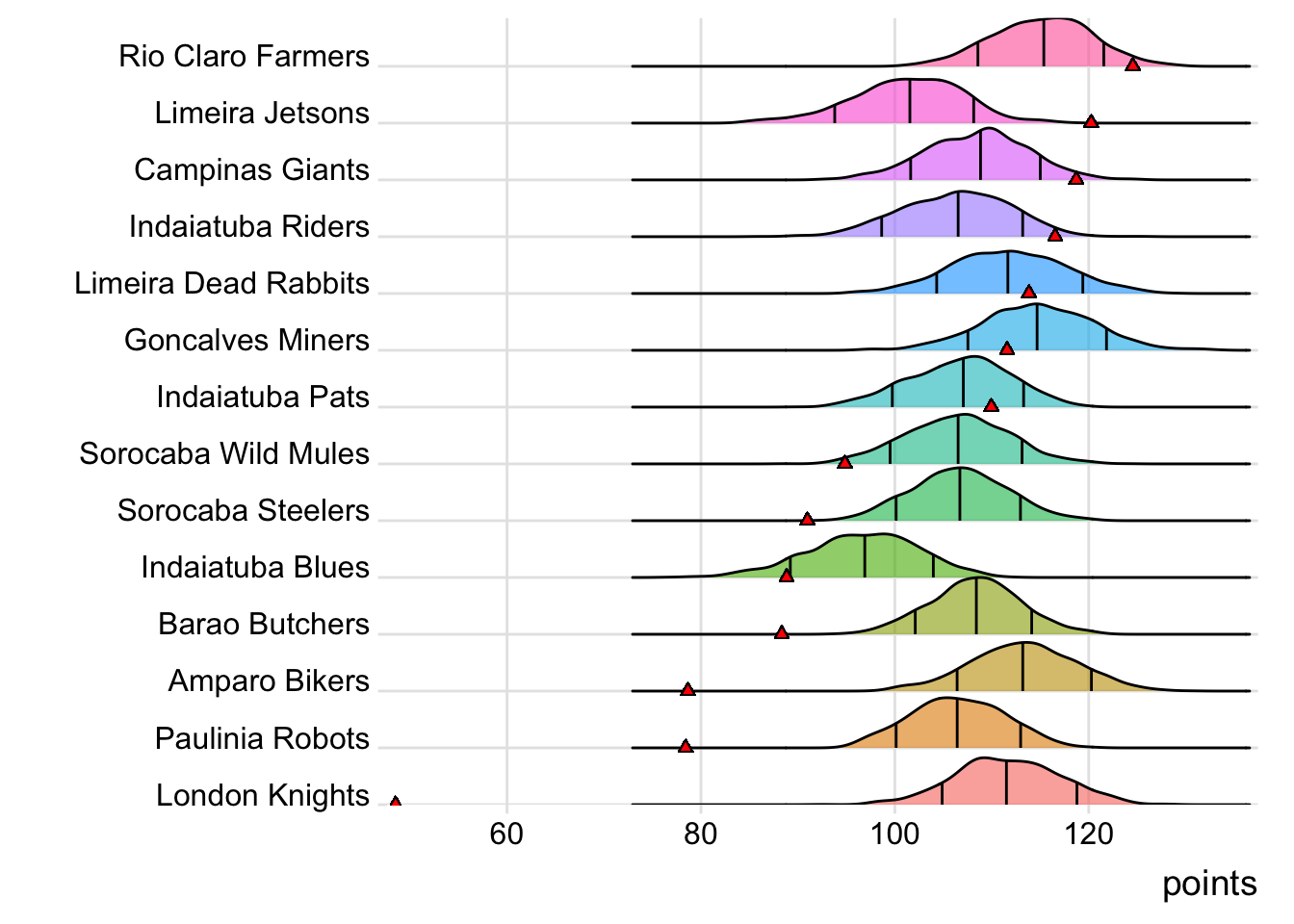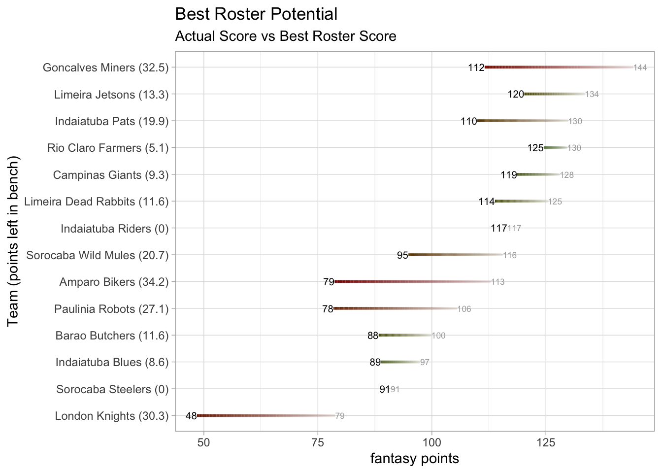 Limeira Dead Rabbits beat their projections by a higher percentage than anyone else in the league this week. They put up 113.84 points when they were only projected 92.88.