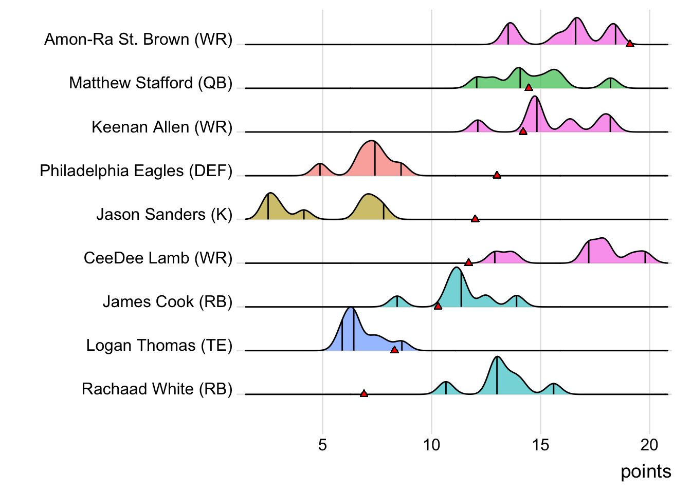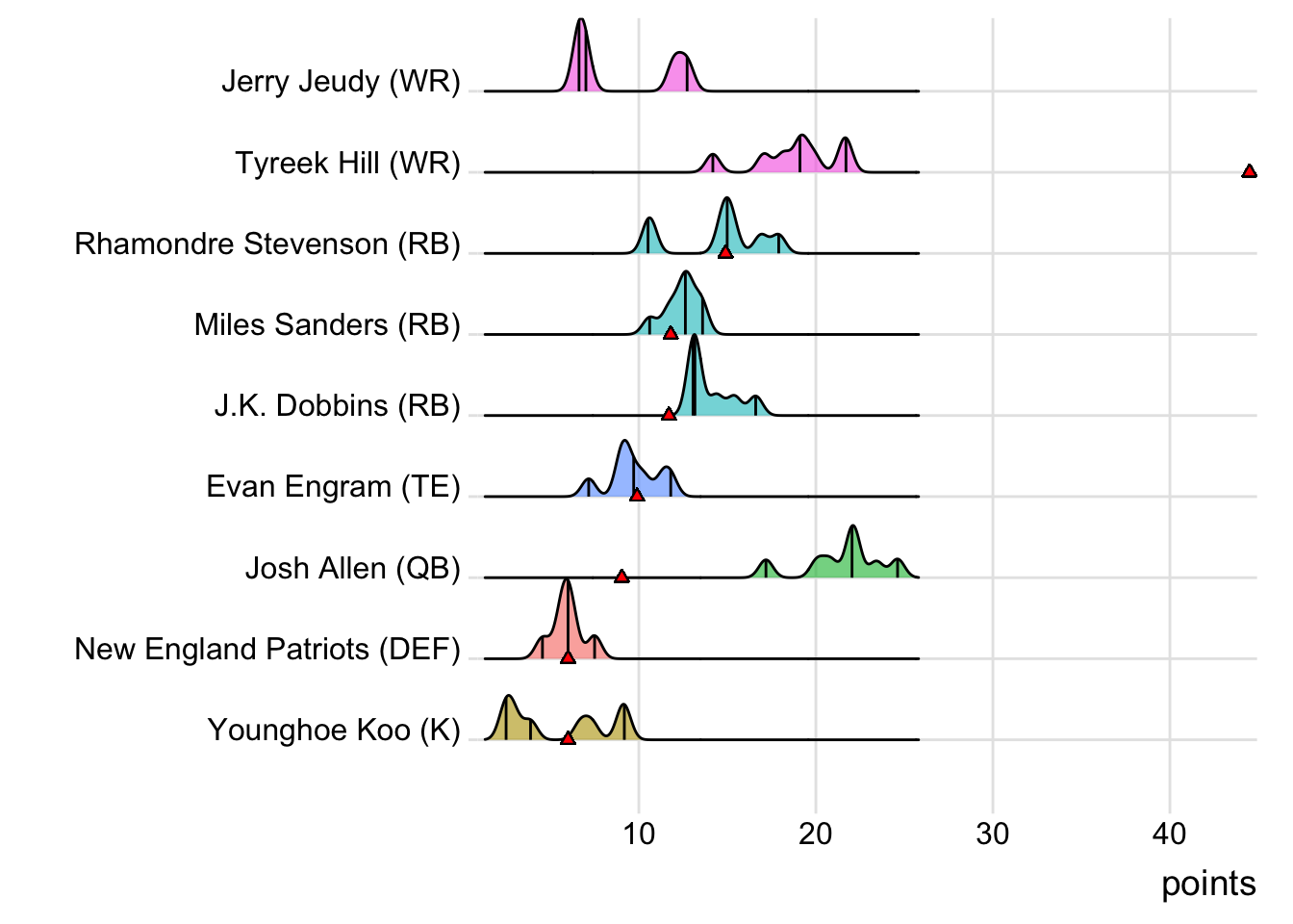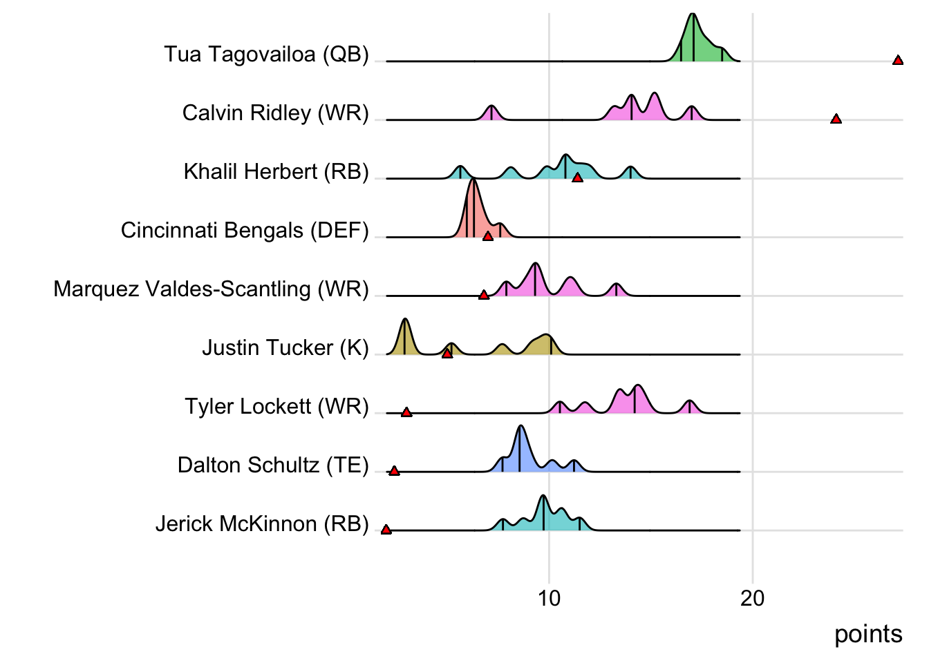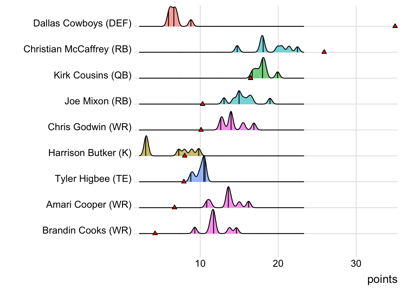 Limeira Dead Rabbits beat their projections by a higher percentage than anyone else in the league this week. They put up 113.84 points when they were only projected 92.88.