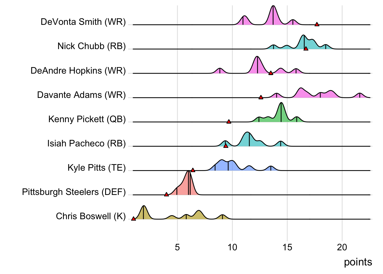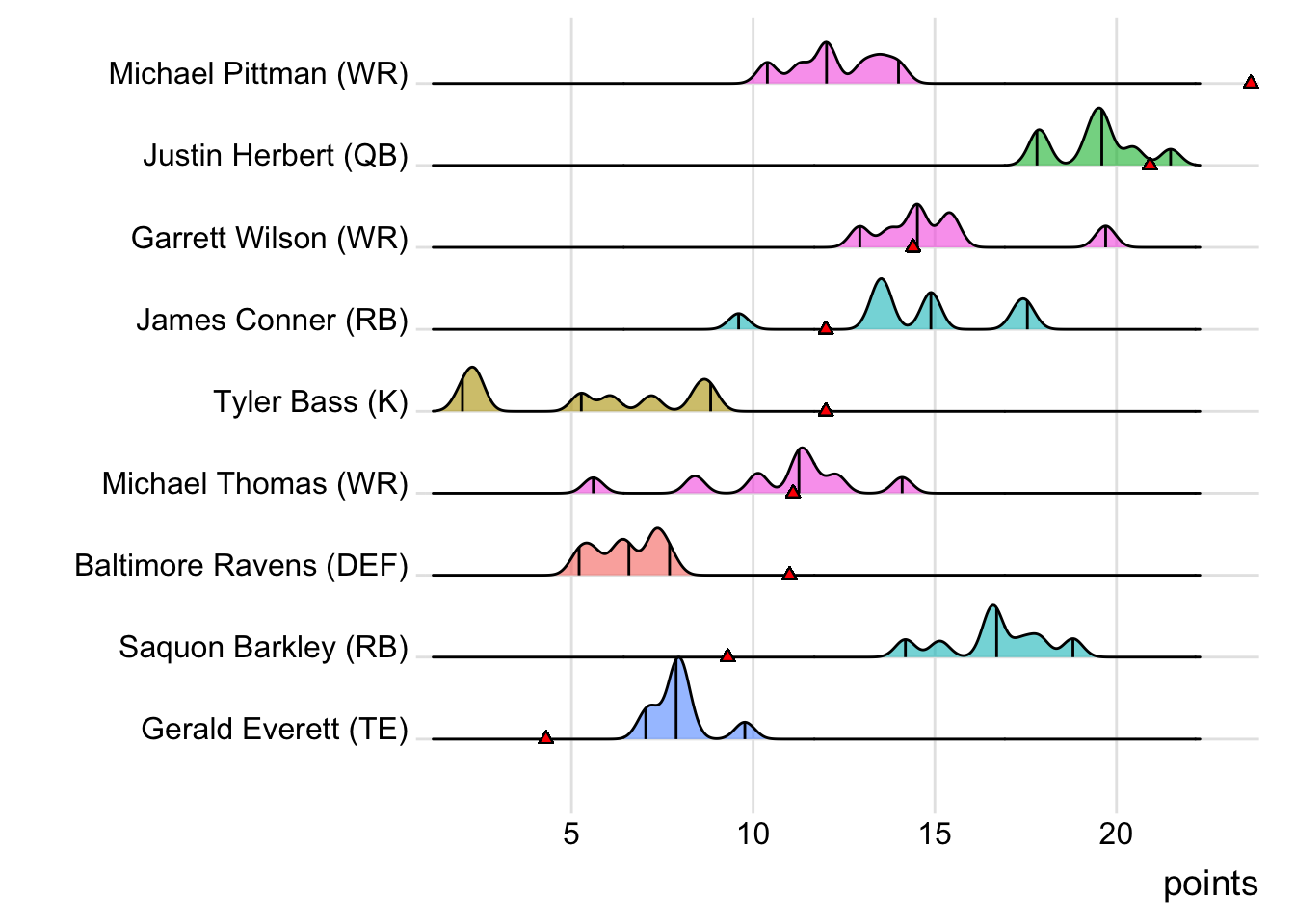 First-round draft picks averaged 17.19 points this week, while second-round players averaged 14.63 and third-rounders 8.83.