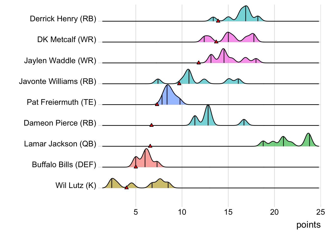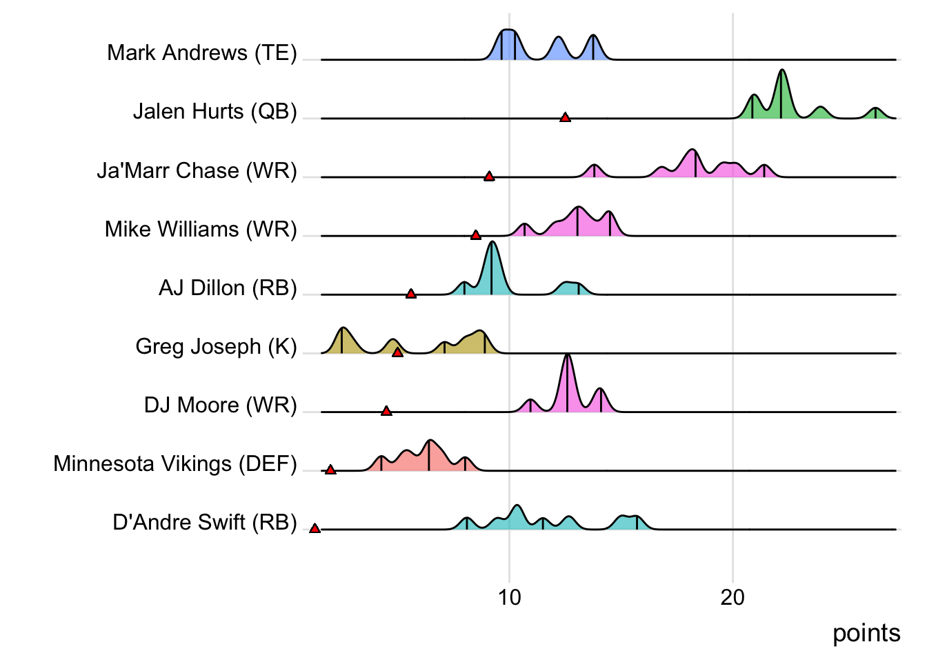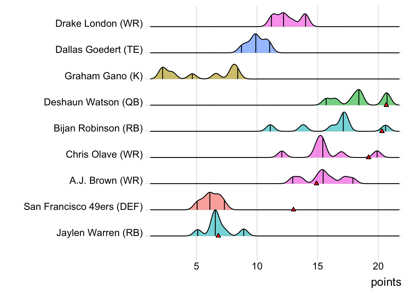 There were a few players in this matchup that had plenty of chances but left points out on the field. On the winning side, Alexander Mattison and Deon Jackson got 32 total touches but only tallied 72 all-purpose yards between them. For London Knights, AJ Dillon managed just 36 yards on 15 touches.