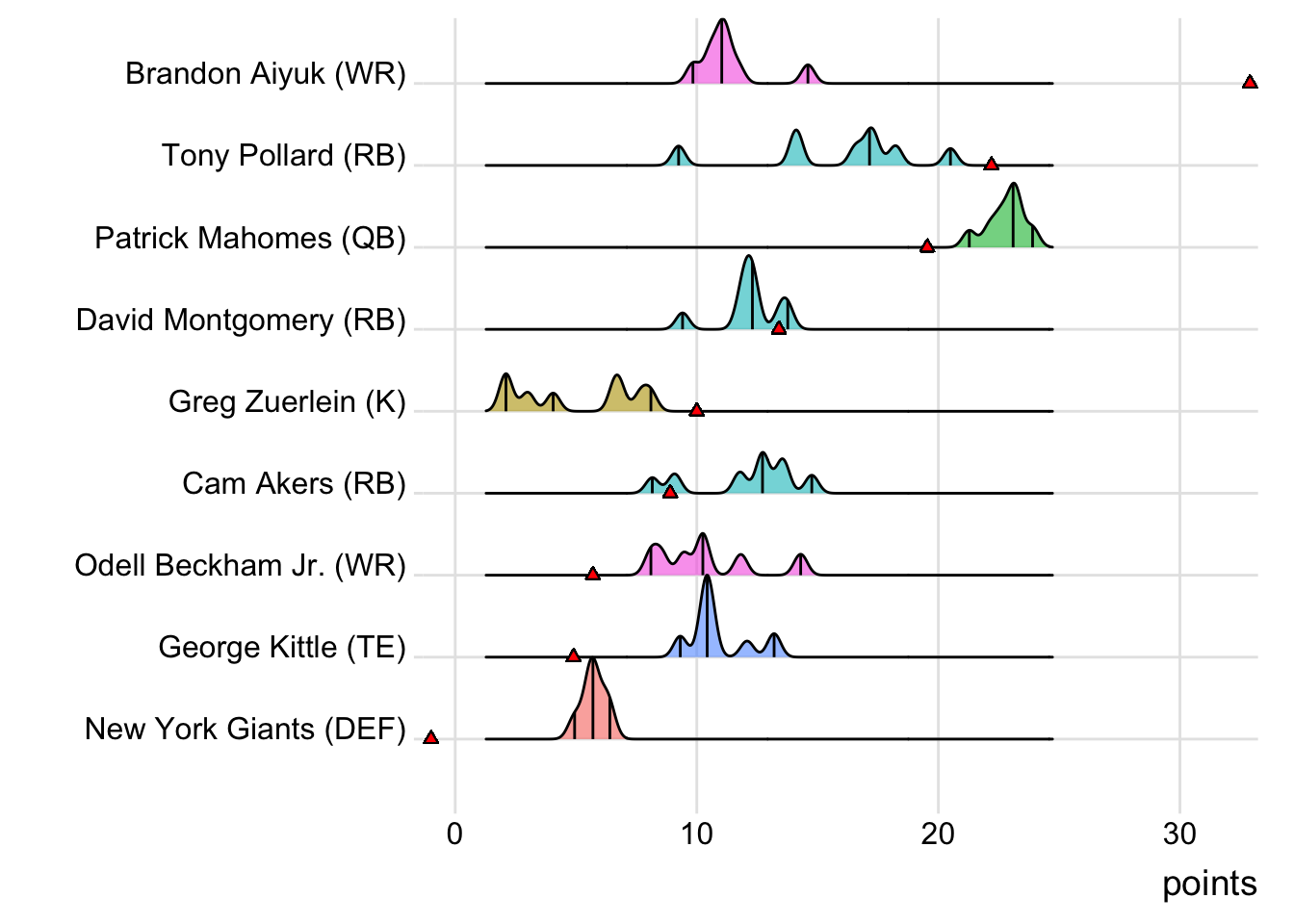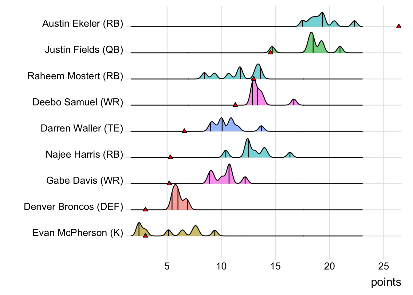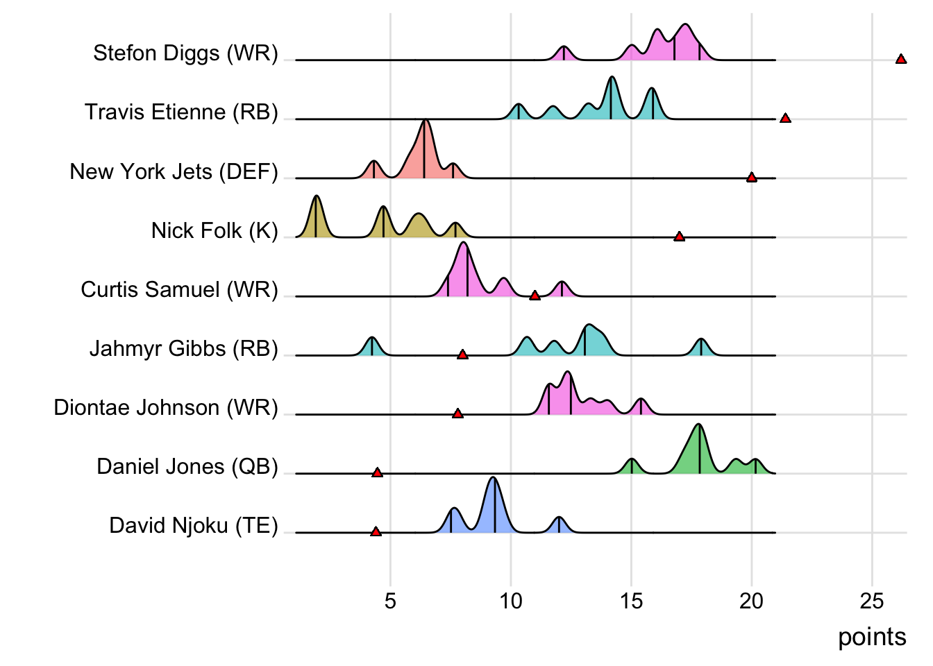 There were a few players in this matchup that had plenty of chances but left points out on the field. On the winning side, Alexander Mattison and Deon Jackson got 32 total touches but only tallied 72 all-purpose yards between them. For London Knights, AJ Dillon managed just 36 yards on 15 touches.