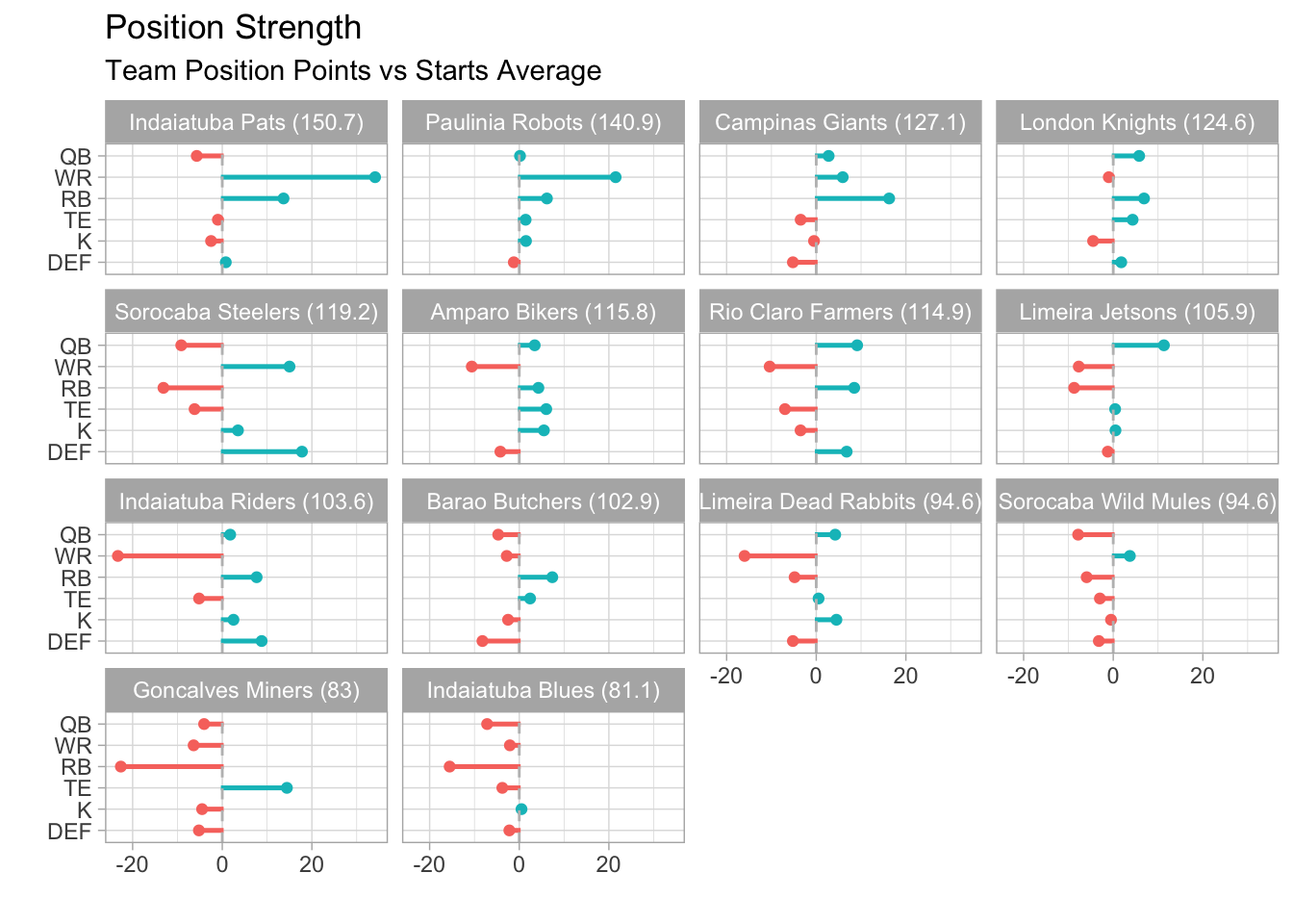 Paulinia Robots was on a different level with their wideouts, as they started two of the league’s top-five overall WRs this week.