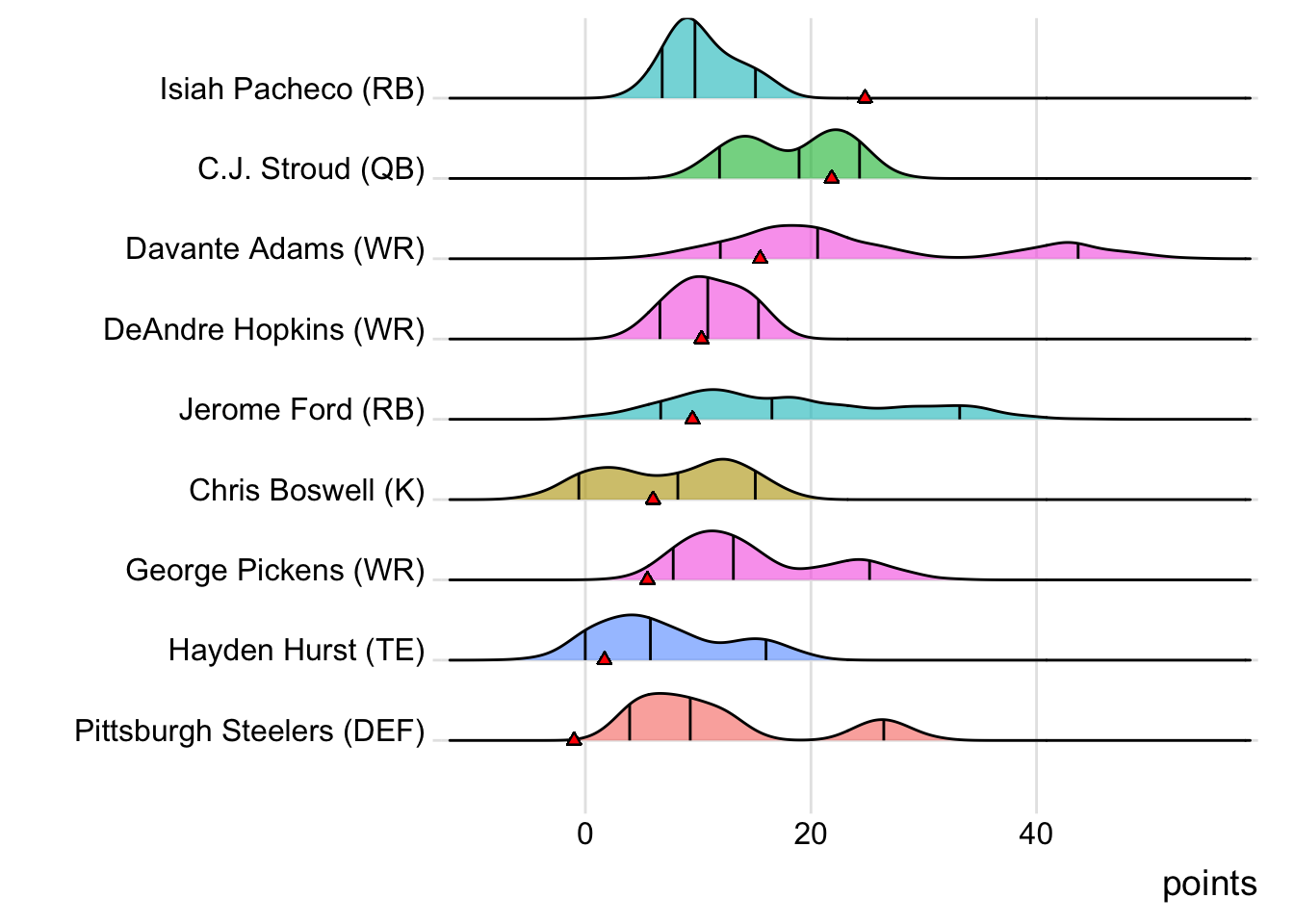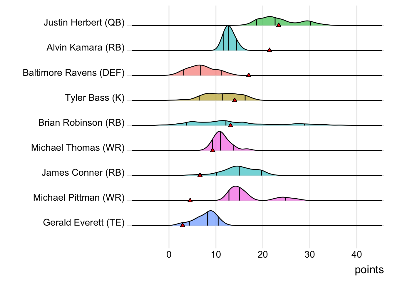 First-round draft choices proved their worth this week by averaging 17.85 points, while players chosen in the second round averaged 13.15 and third-rounders 10.00.