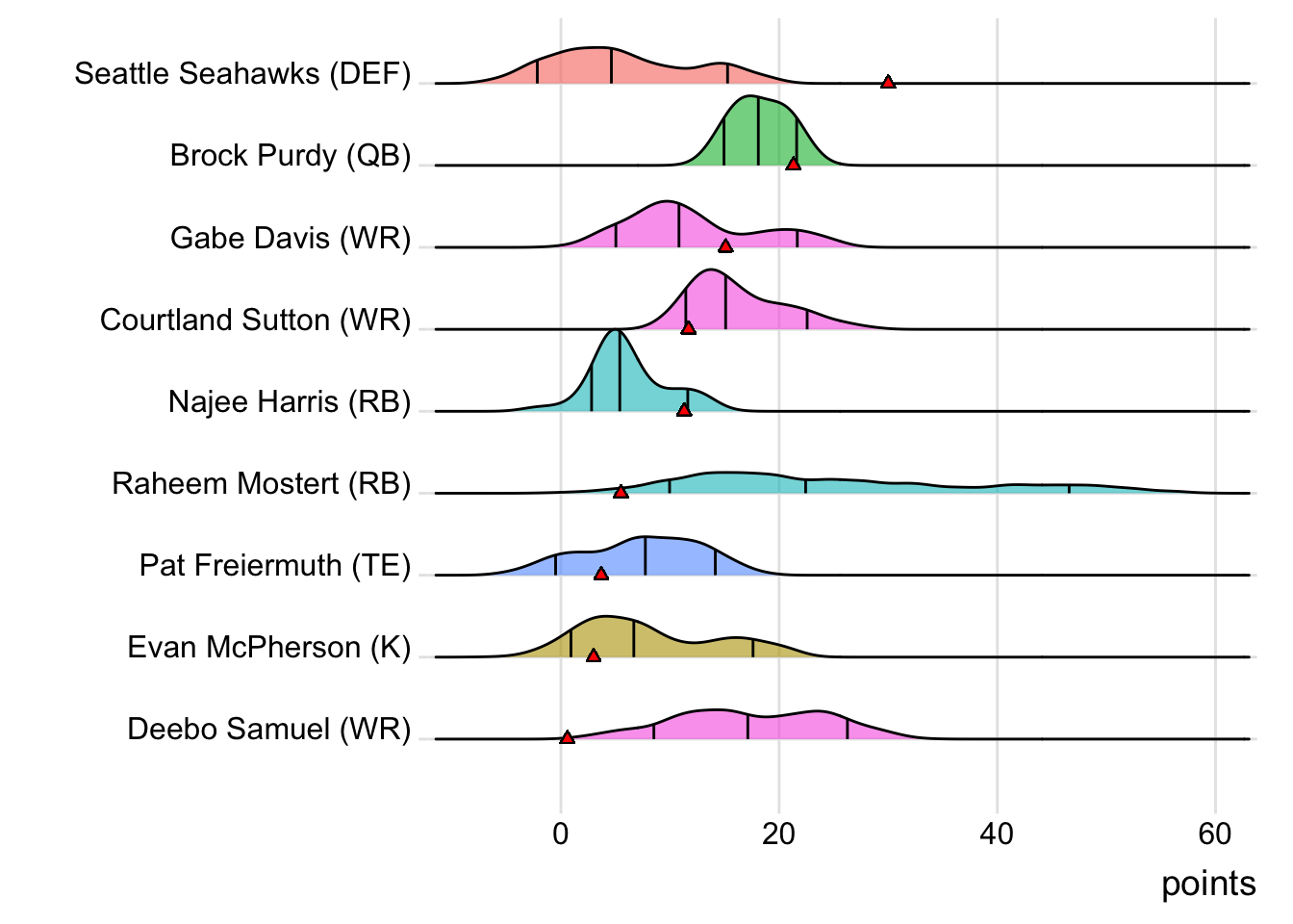 Barao Butchers picked up 30.00 points from the Seattle Seahawks DEF (3 PA, 1 TD, 11 Sack, 2 Int, 1 Fum) and 21.32 from Brock Purdy (283 Pas Yds, 1 Pas TD, 1 Rsh TD), defeating Goncalves Miners 102.22 to 78.10. Barao Butchers came into the Monday night game facing a 5.88-point deficit, but scored 30.00 for the comeback victory. In this matchup, Barao Butchers scored 2.9% more than their 99.38 projected and they’ve now beaten expectations three weeks running. Goncalves Miners was led by Justin Jefferson with 26.50 points (85 Rec Yds, 2 TD) and Jahan Dotson, who scored 12.70 (27 Rec Yds, 1 TD). Barao Butchers (3-1, 443.64 points) climbs into fifth place and Goncalves Miners (2-2, 359.12 points) steps into sixth place.