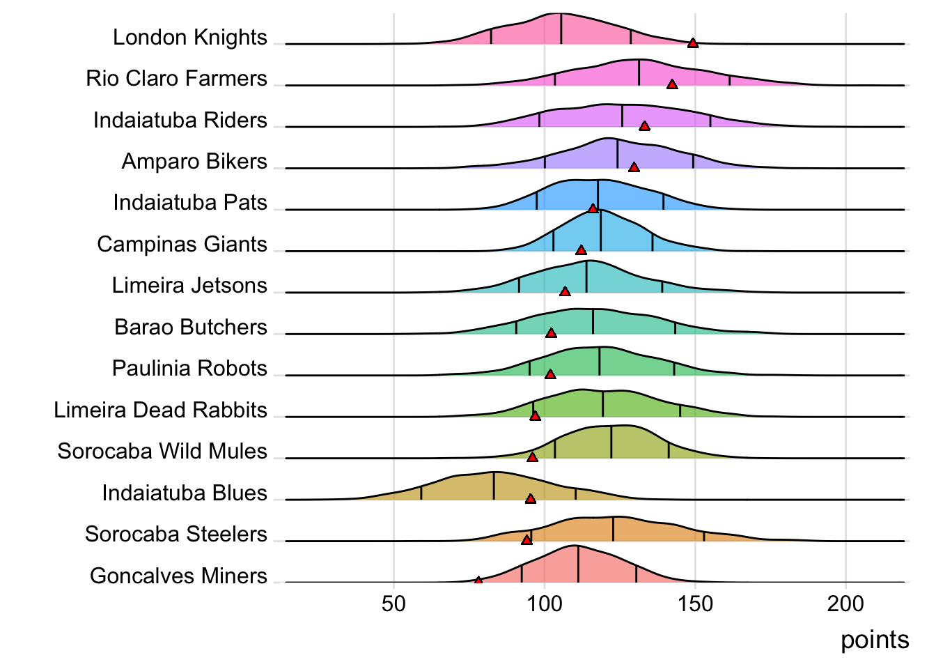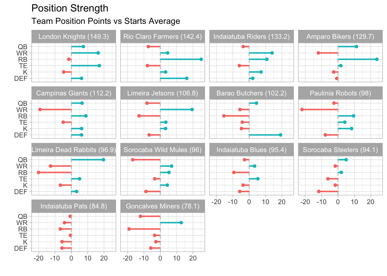 Indaiatuba Riders has now beaten their weekly score projection in each matchup this season.