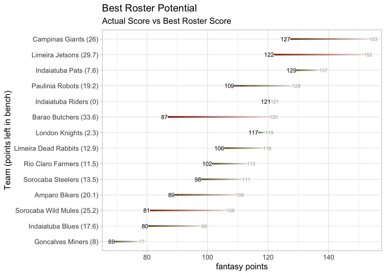 Indaiatuba Riders has now beaten their weekly score projection in each matchup this season.