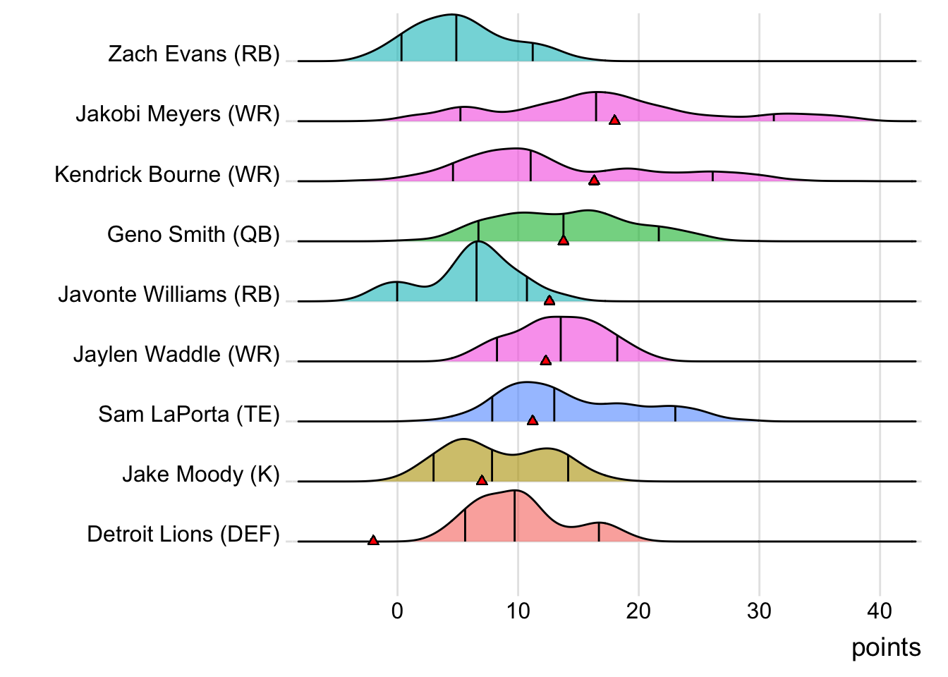On Amparo Bikers, the Detroit Lions DEF represented one of two total league starters to tally a negative score (and the only DEF in negative territory ).