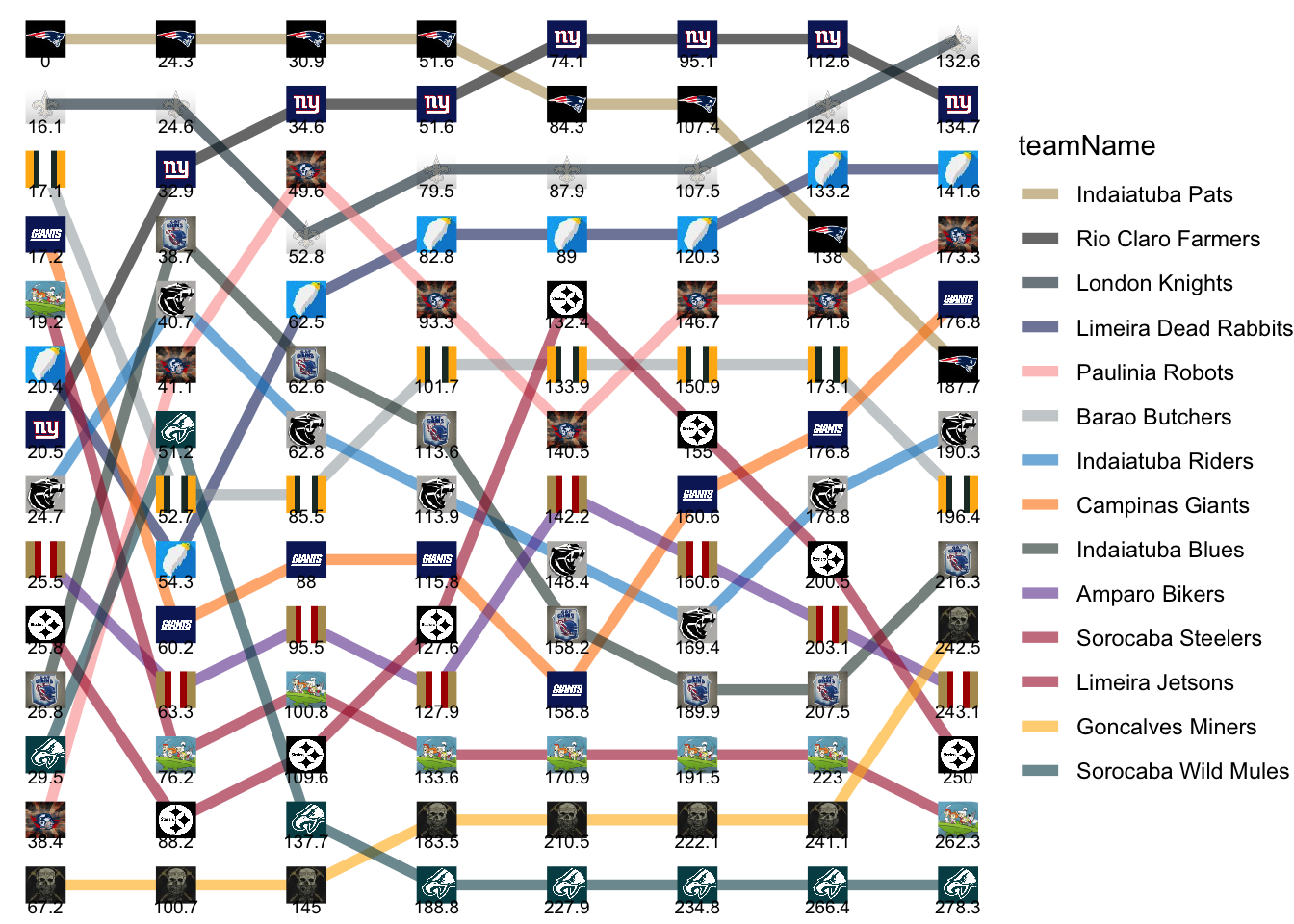 | Limeira Dead Rabbits | 20.38 | 33.90 | 8.20 | 20.30 | 6.20 | 31.36 | 12.90 | 8.40 |