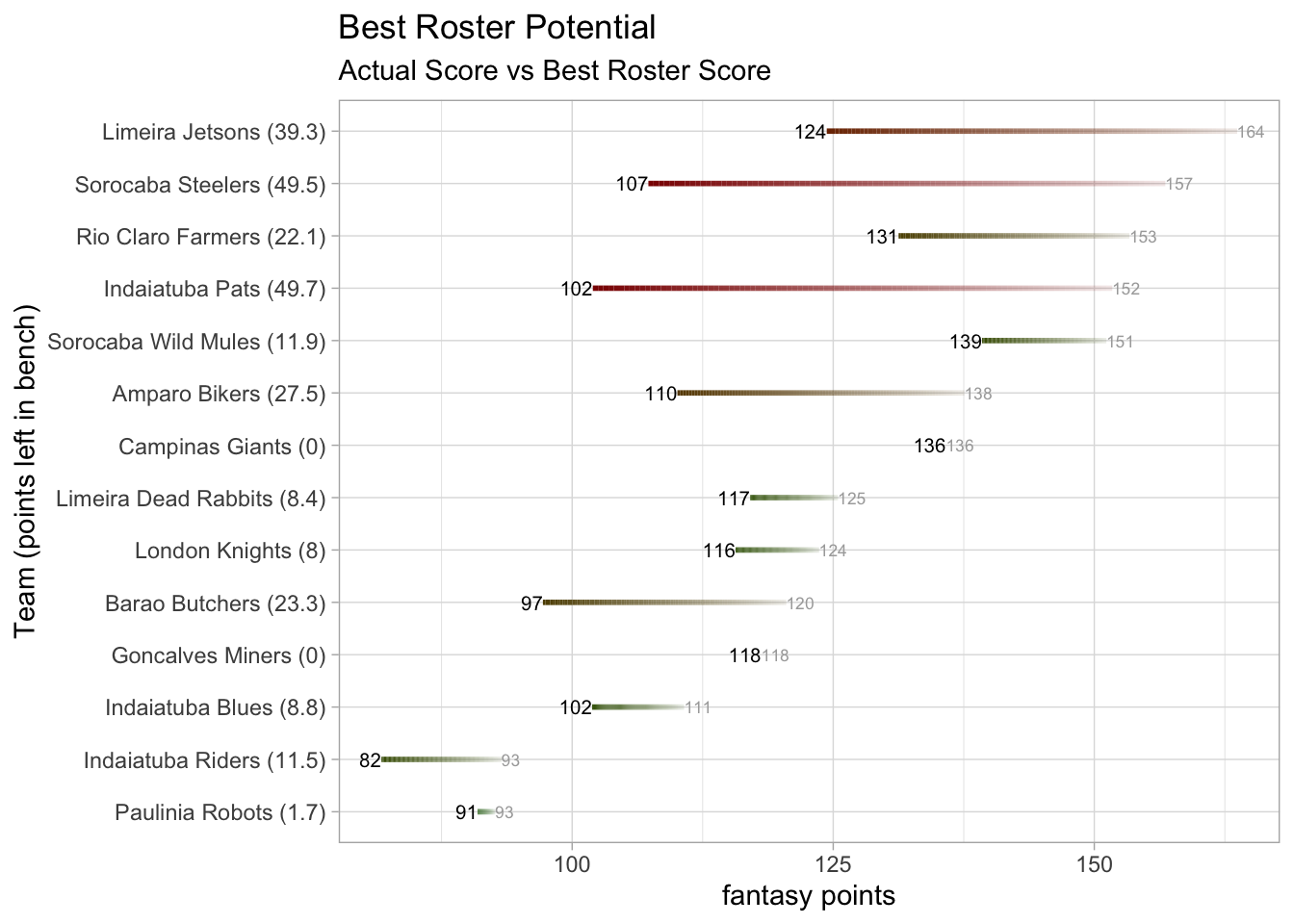 Limeira Dead Rabbits was favored to win by the biggest margin in the league this week (24.66 points) but ended up losing by 14.20 points.
