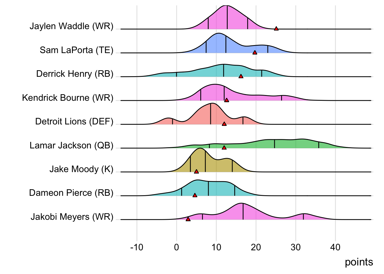 While Jakobi Meyers led Amparo Bikers with 18.00 points last week, Waddle paced the squad this week with 25.10.