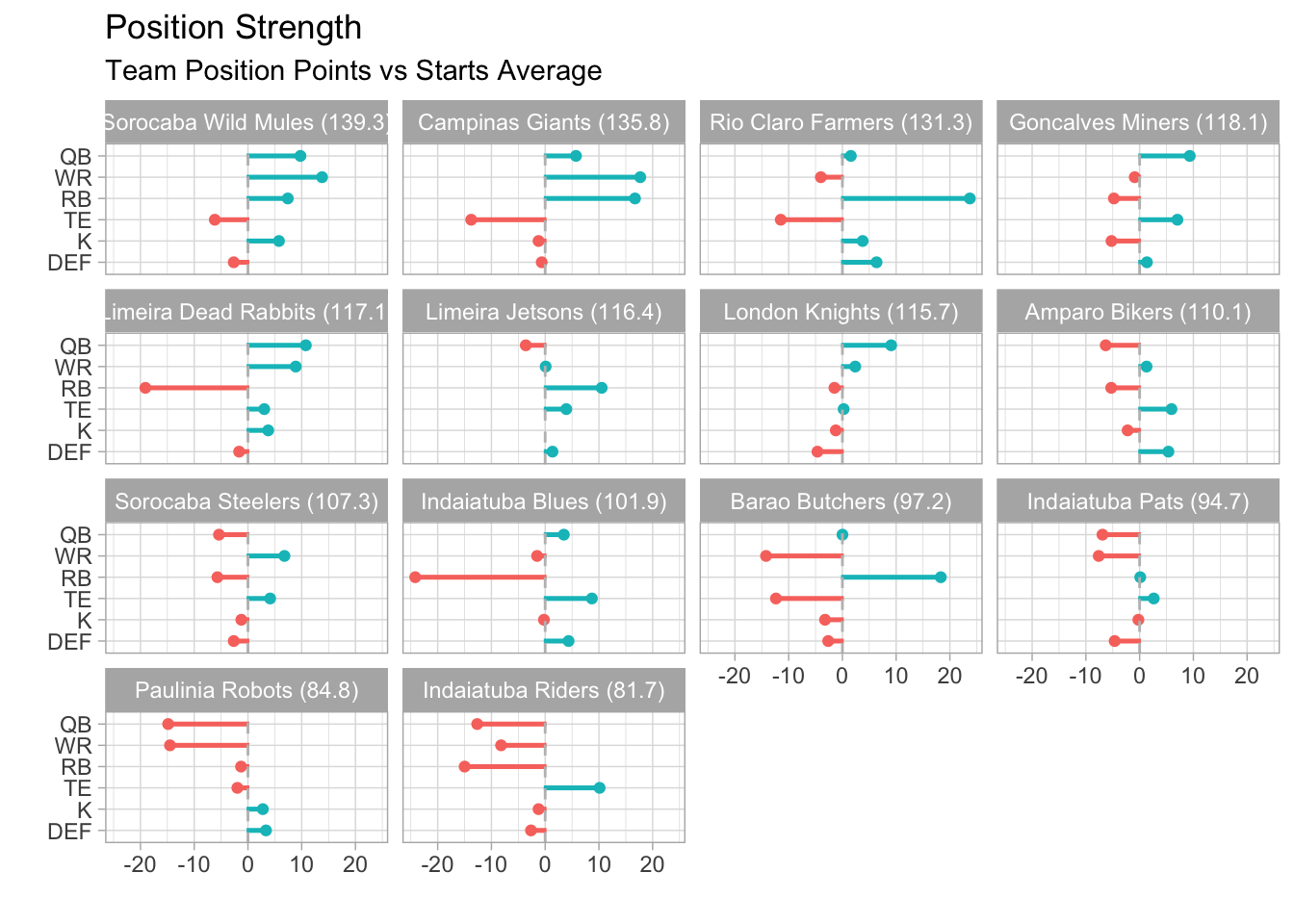 Indaiatuba Blues won this week, even without starting a top-30 scoring RB.