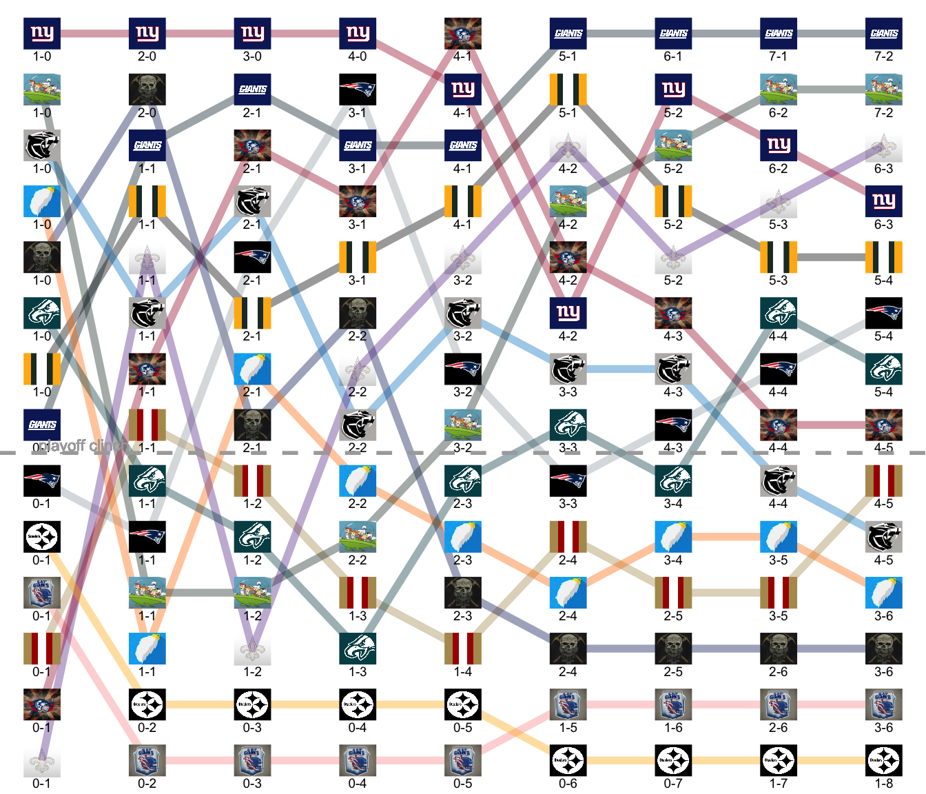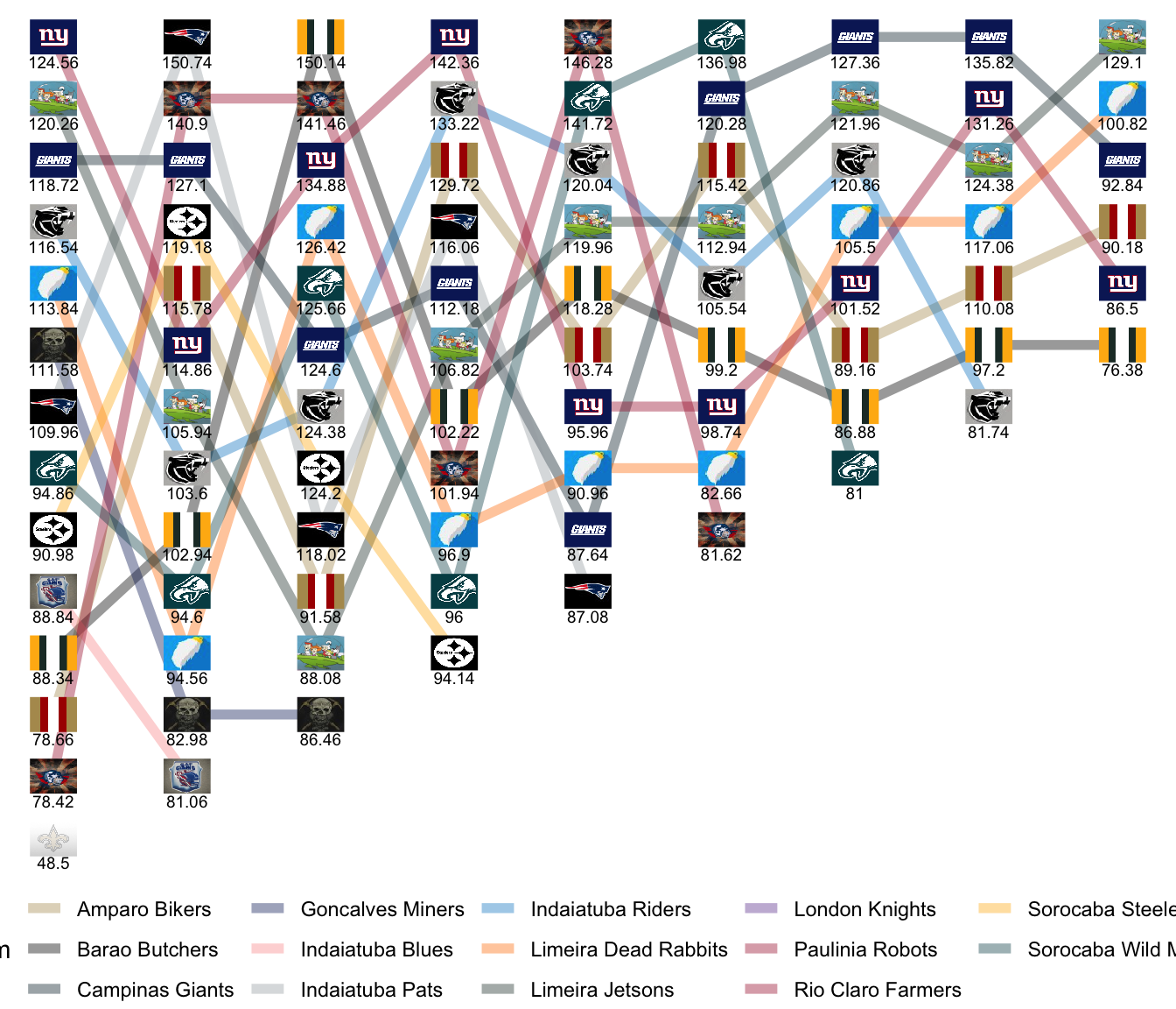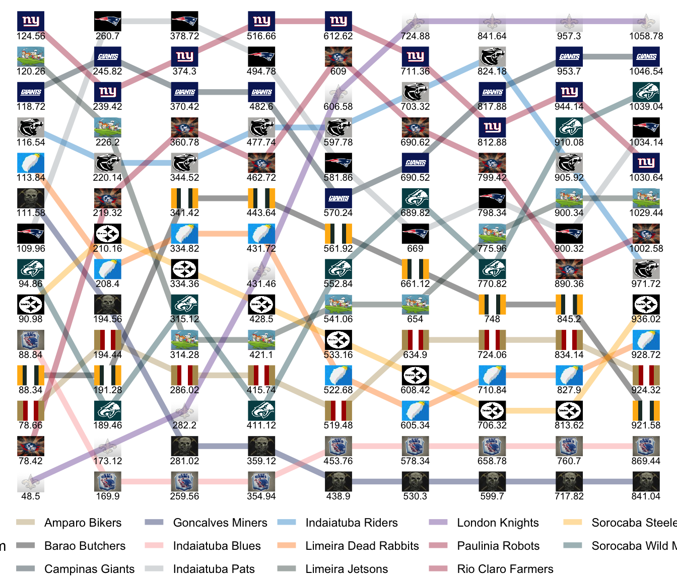 League Leaders: Giants, Jetsons, Knights, Farmers, Butchers, Pats.