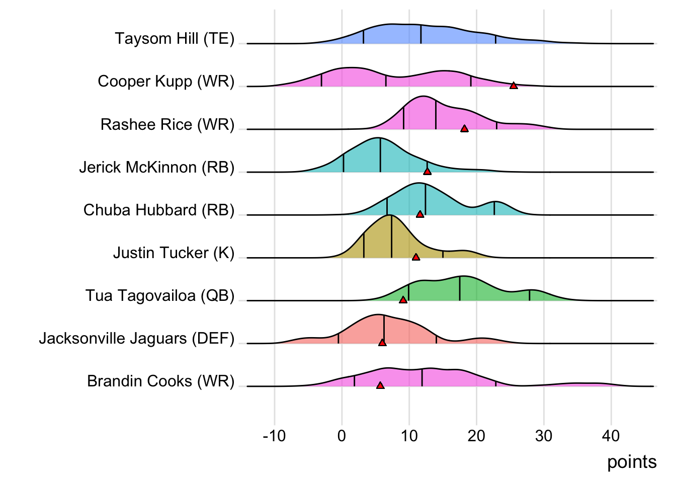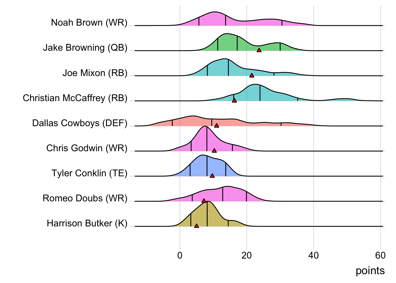 Since Browning was the top point-getter for Rio Claro Farmers, it means a different player has led the team in each of the last four weeks. With 22.54 points, Tommy DeVito paced the squad in Week 11, while Christian McCaffrey (30.90 points) was tops in Week 12 and Joe Mixon (29.70 points) in Week 13.