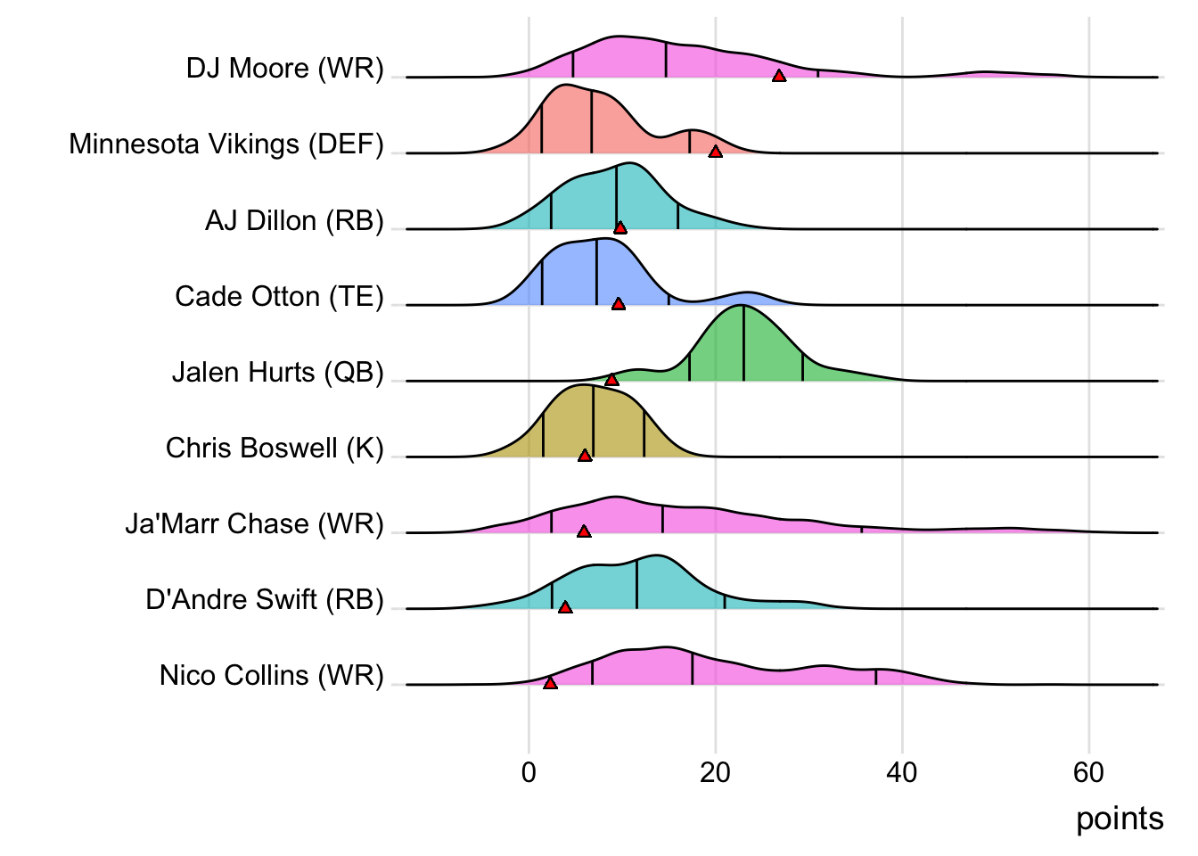 While Jalen Hurts led London Knights in Week 12 (with 34.50 points) and Nico Collins last week (34.10 points), Moore has now been the team’s leading point-getter twice in the last four matches.