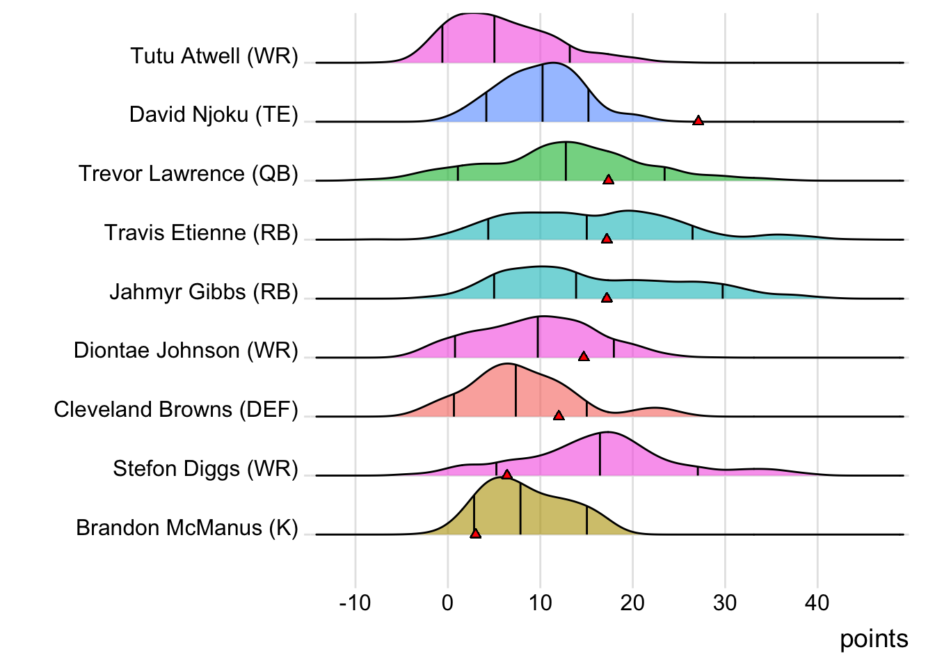 Since Njoku was the top point-getter for Limeira Jetsons, it means a different player has led the team in each of the last four weeks. With 21.50 points, Jahmyr Gibbs paced the squad in Week 11, while Trevor Lawrence (24.56 points) was tops in Week 12 and Sam Howell (19.18 points) last week.