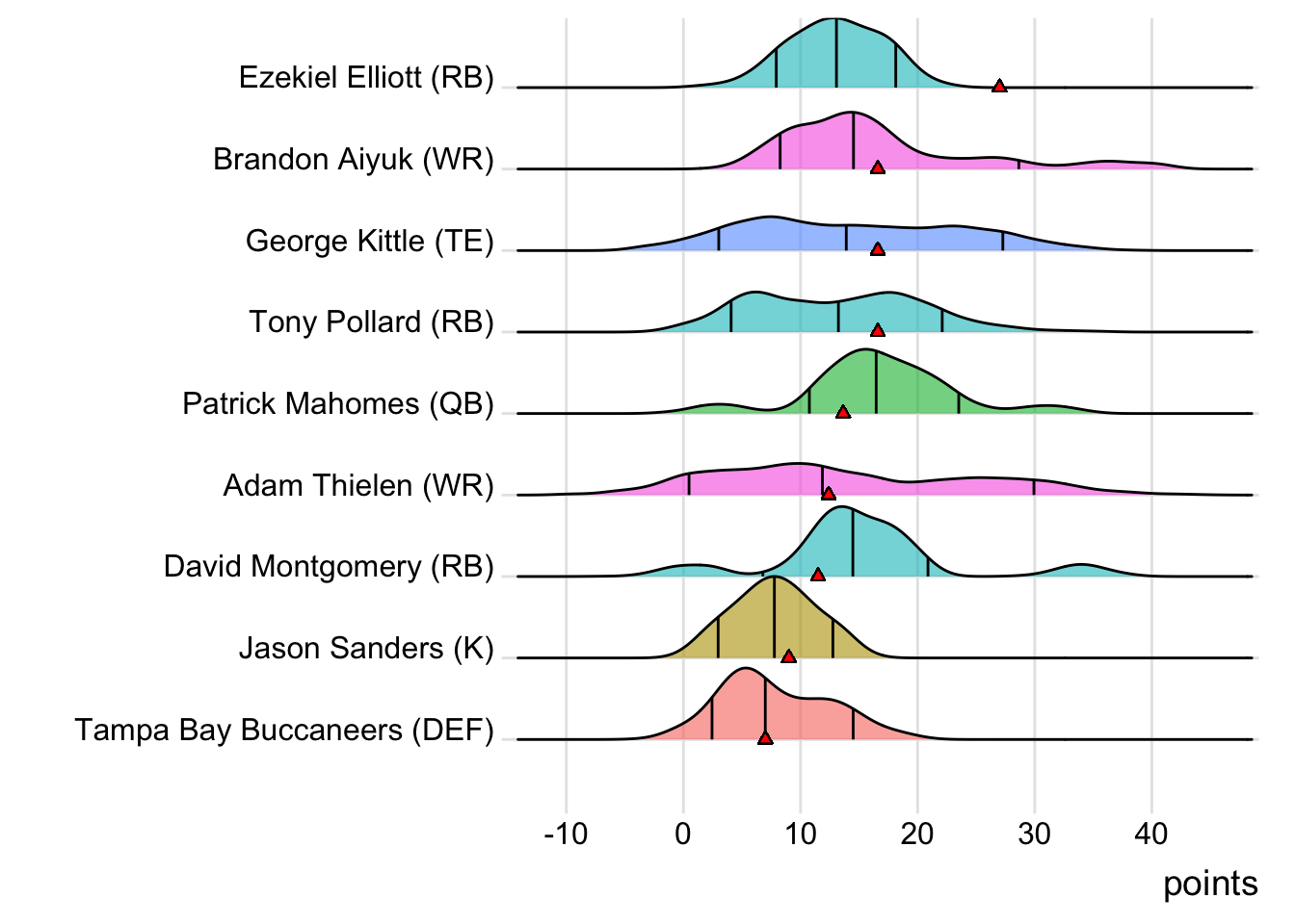 While Tony Pollard led Indaiatuba Riders with 17.30 points last week, Elliott paced the squad this week with 27.00. Additionally, with 27 touches this week for Rachaad White, it means that his touches have now increased in three consecutive games.